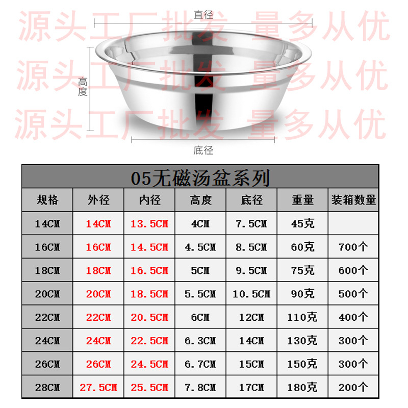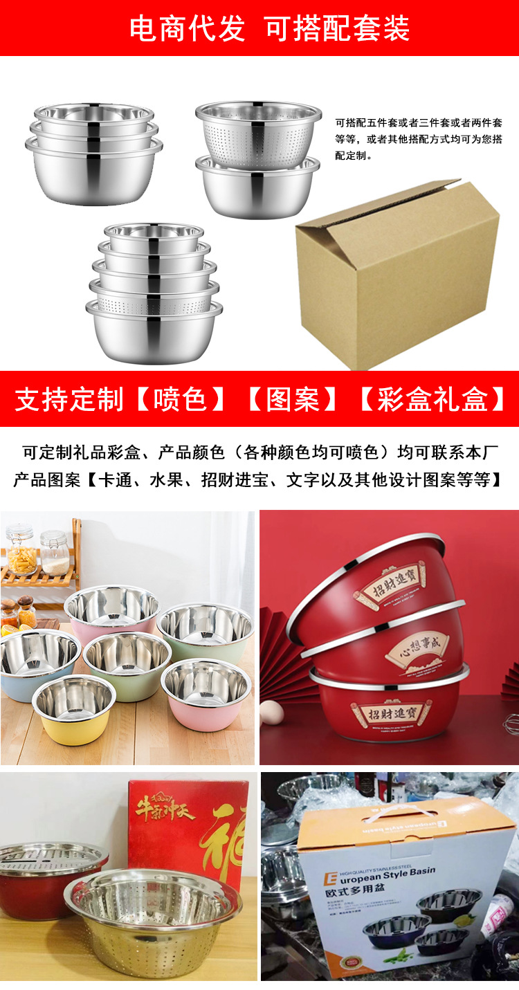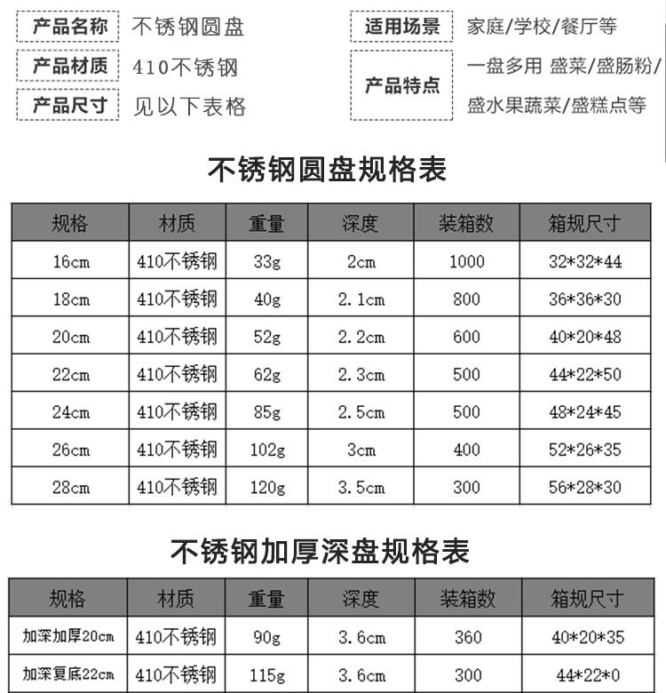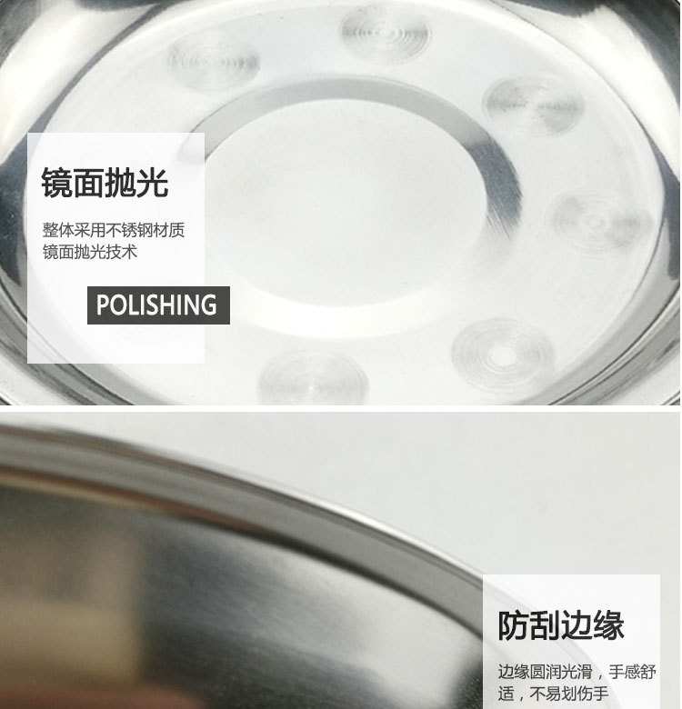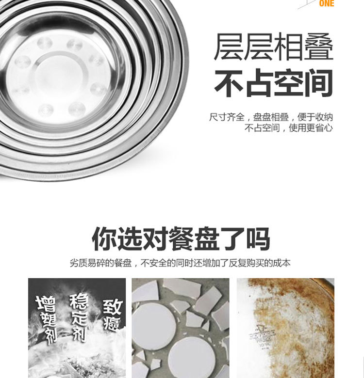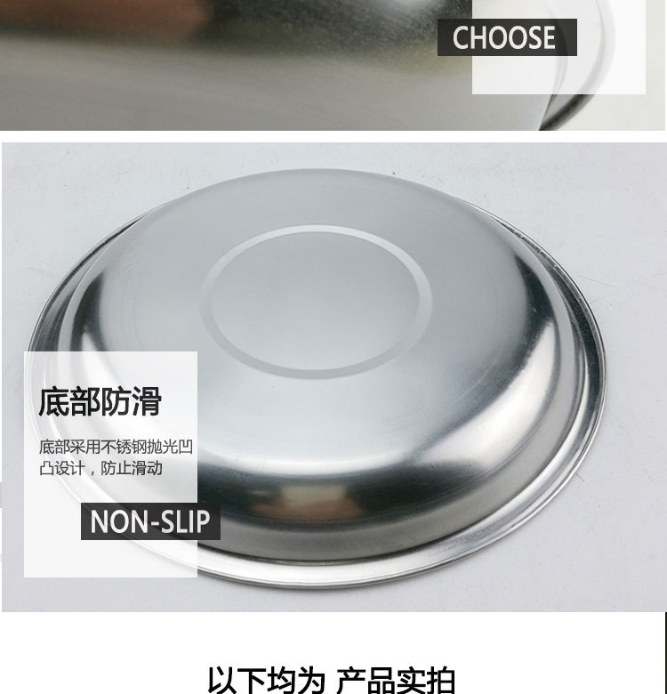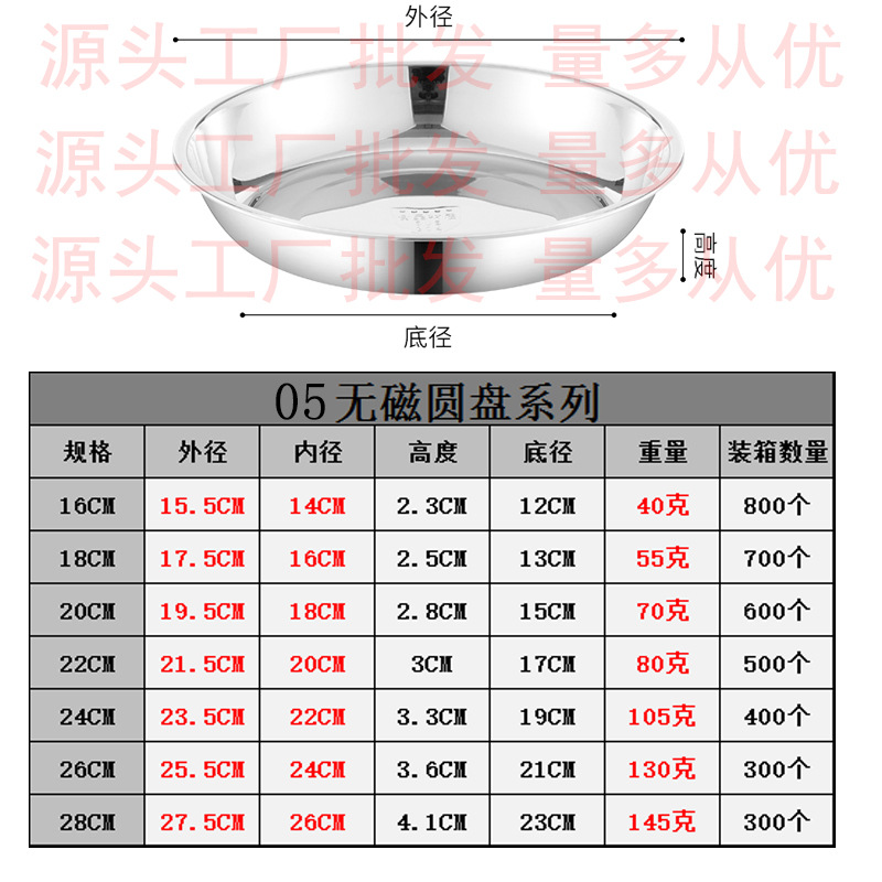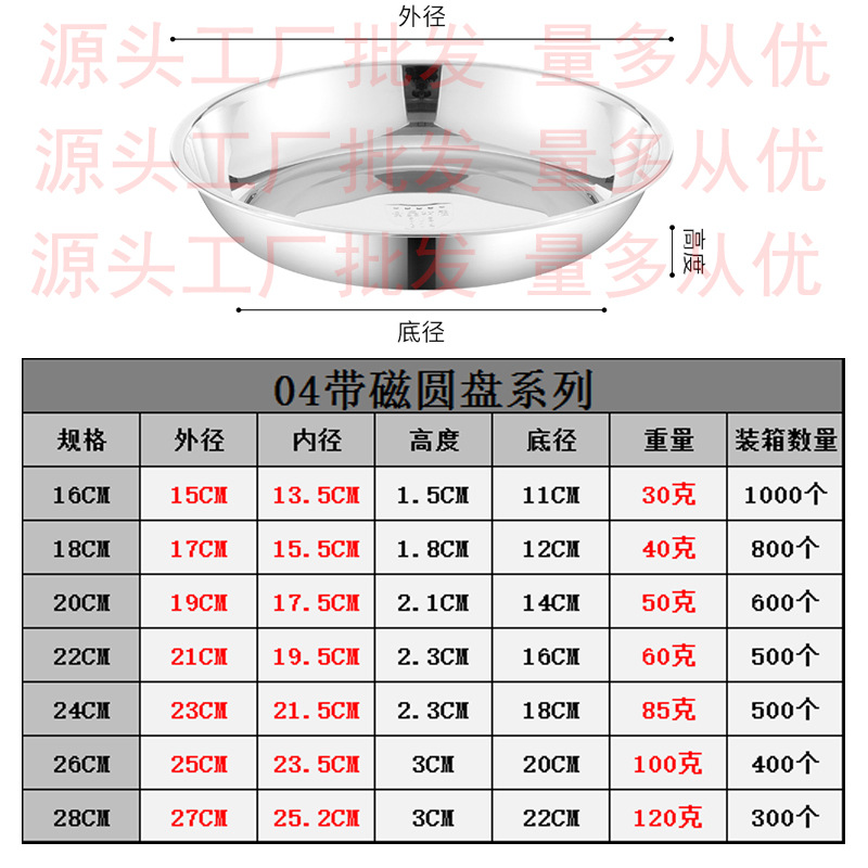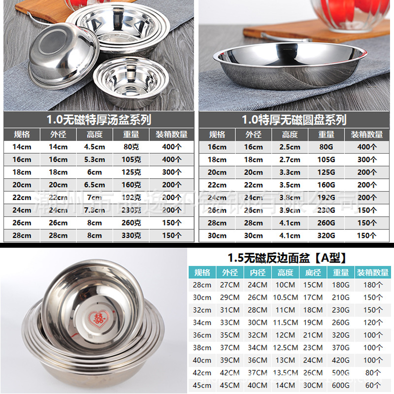 도매 스테인레스 스틸 트레이 304 식품 등급 플레이트 라운드 딥 플레이트 가정용 주방 학교 매점 생선 요리스토어 가기
