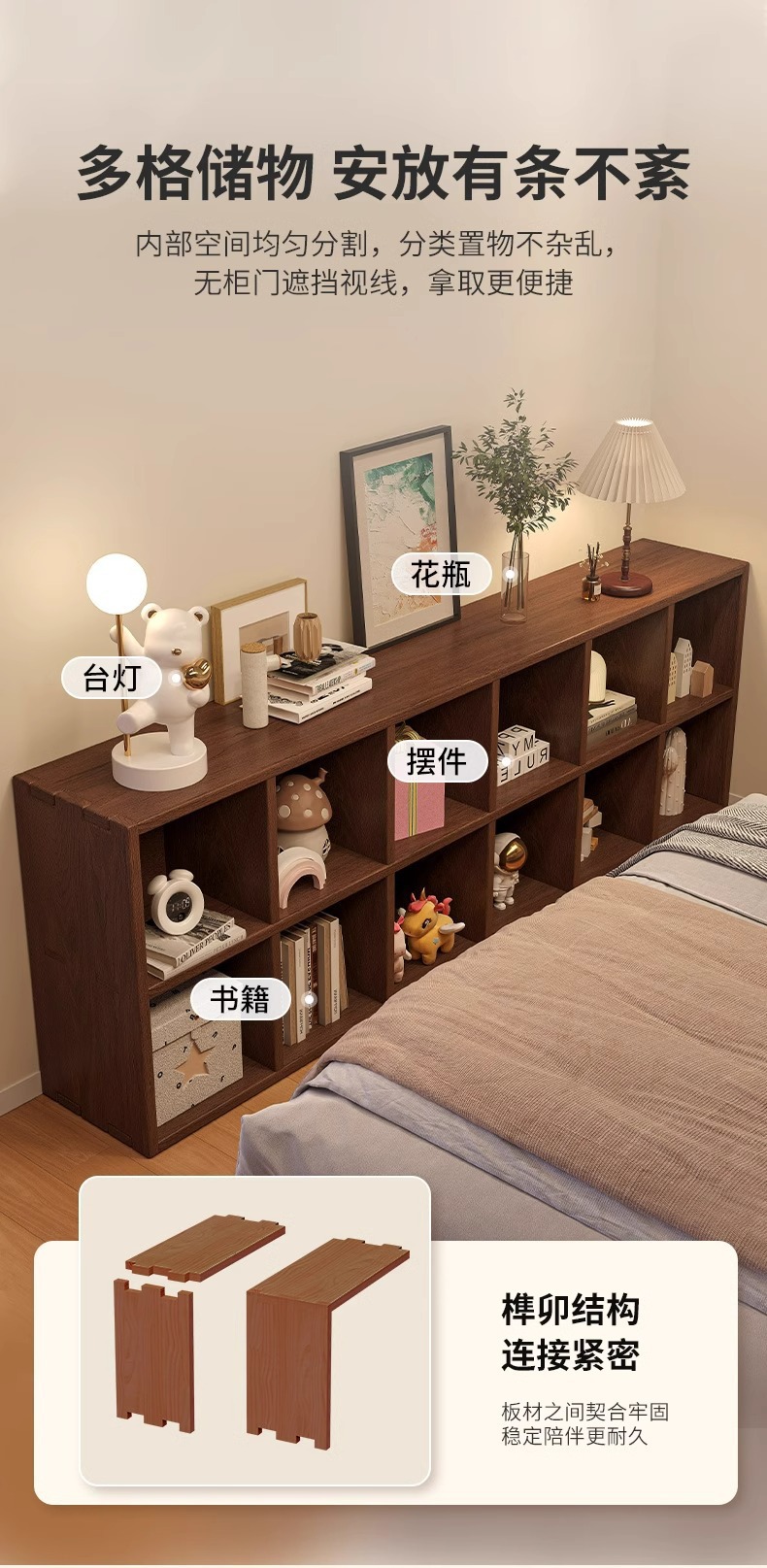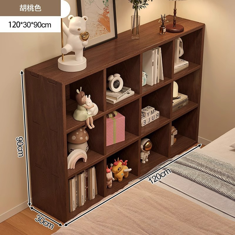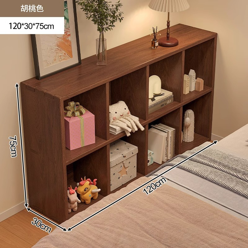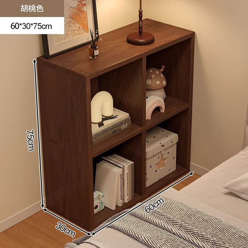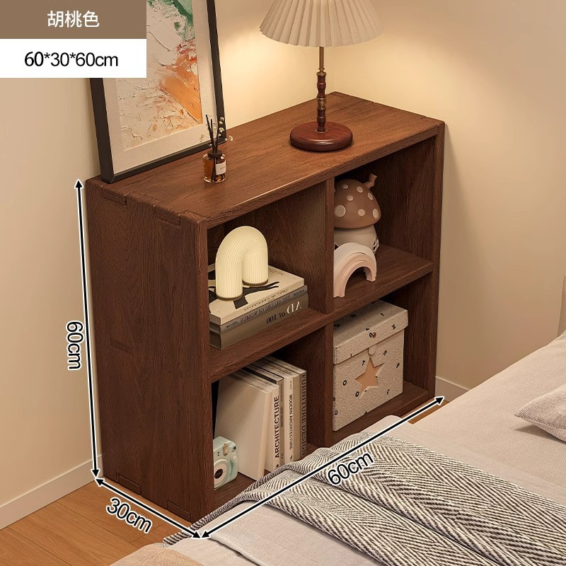 实木床头柜书柜一体胡桃色格子柜自由组合卧室夹缝床边收纳储物柜
