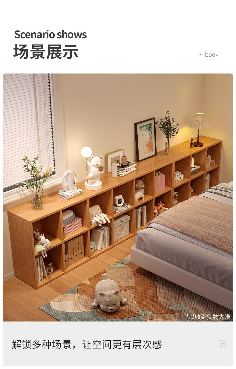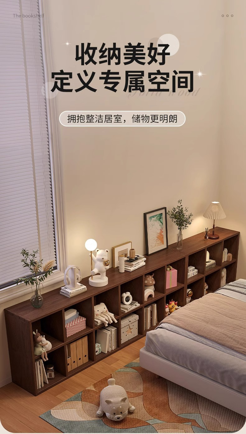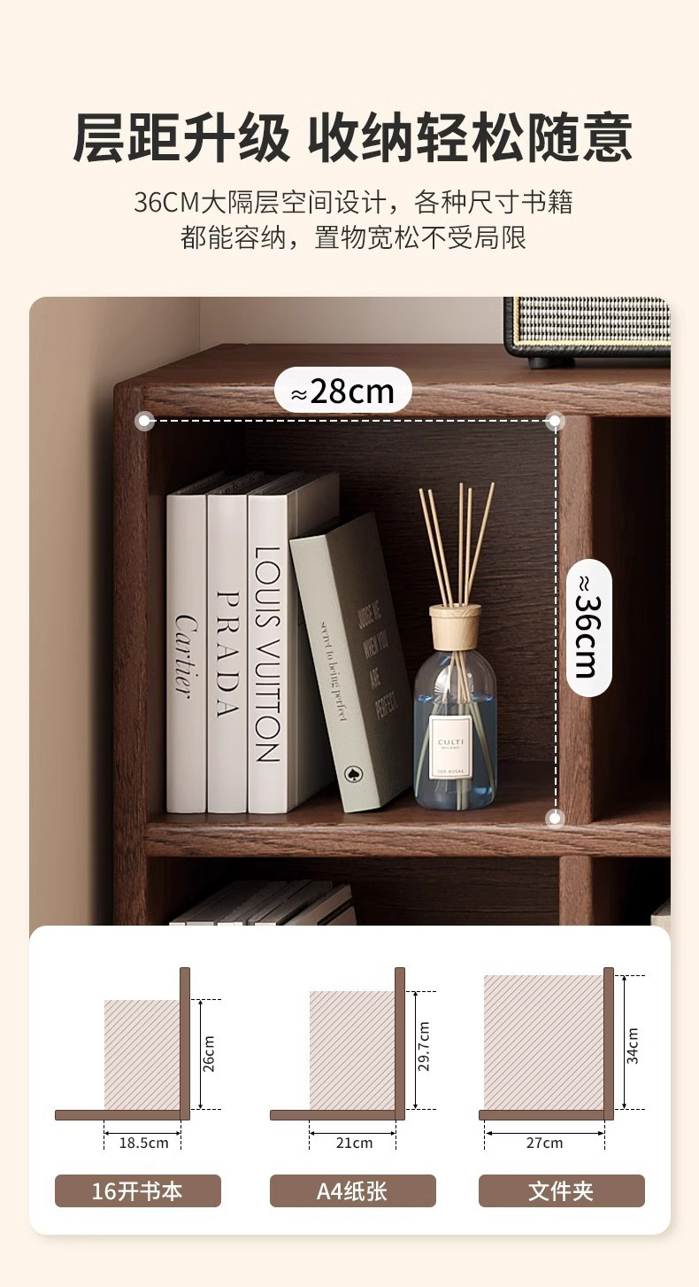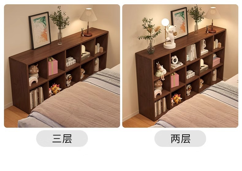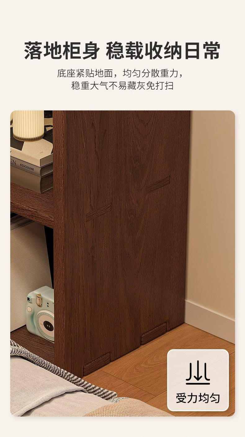 实木床头柜书柜一体胡桃色格子柜自由组合卧室夹缝床边收纳储物柜
