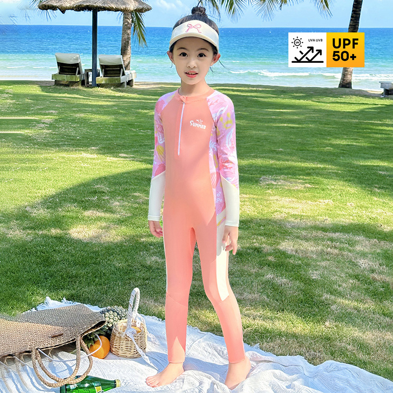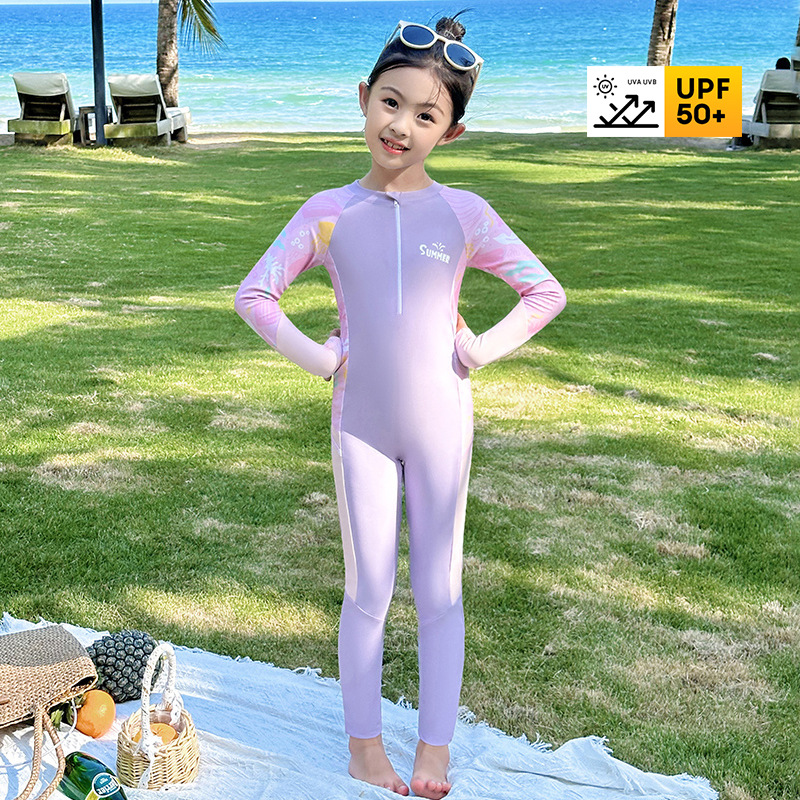 편안하고 큰 어린이를위한 새로운 어린이 수영복 소녀 긴팔 바지 빠른 건조 선 스크린 다이빙 스포츠 수영복