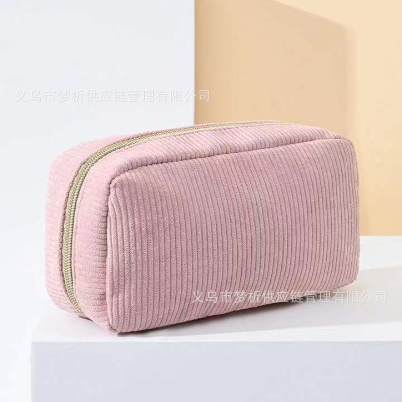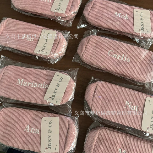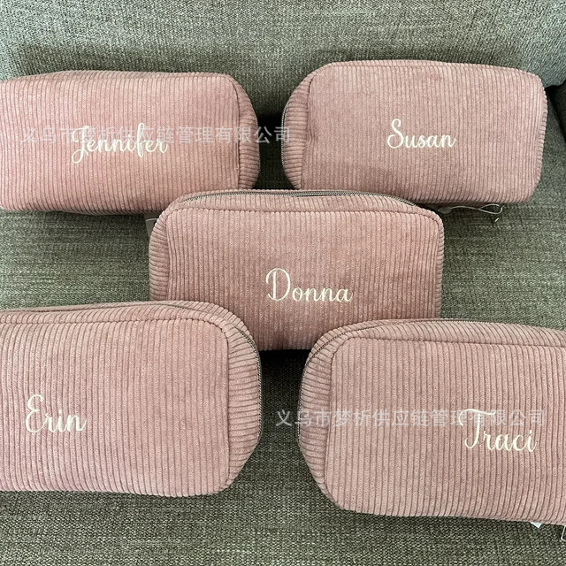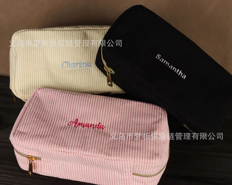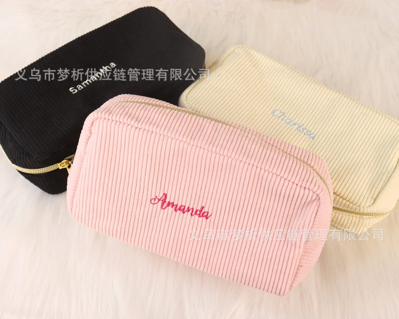 에스티 맞춤 자수 코듀로이 여성용 휴대용 클러치백 대용량 화장품 가방 여행용 수납 가방 이름