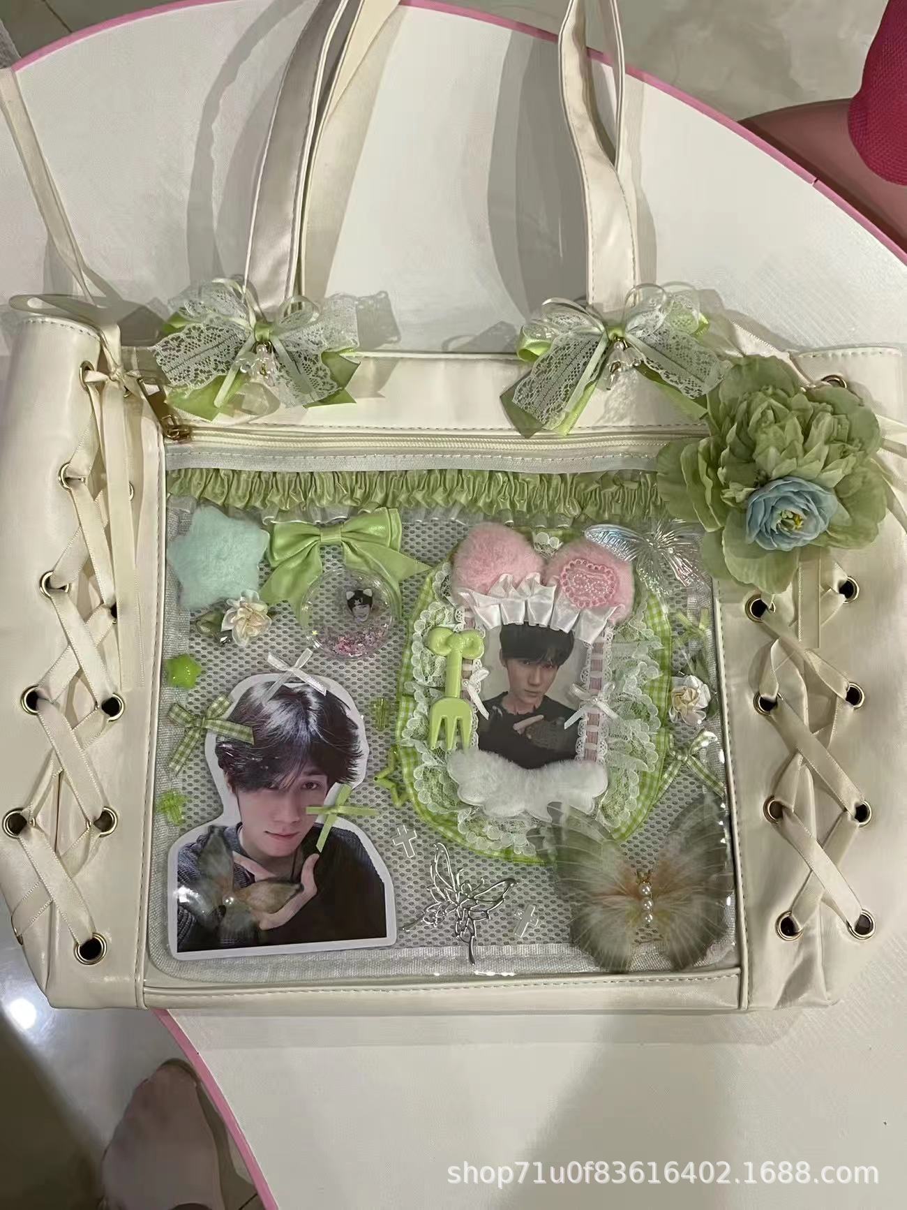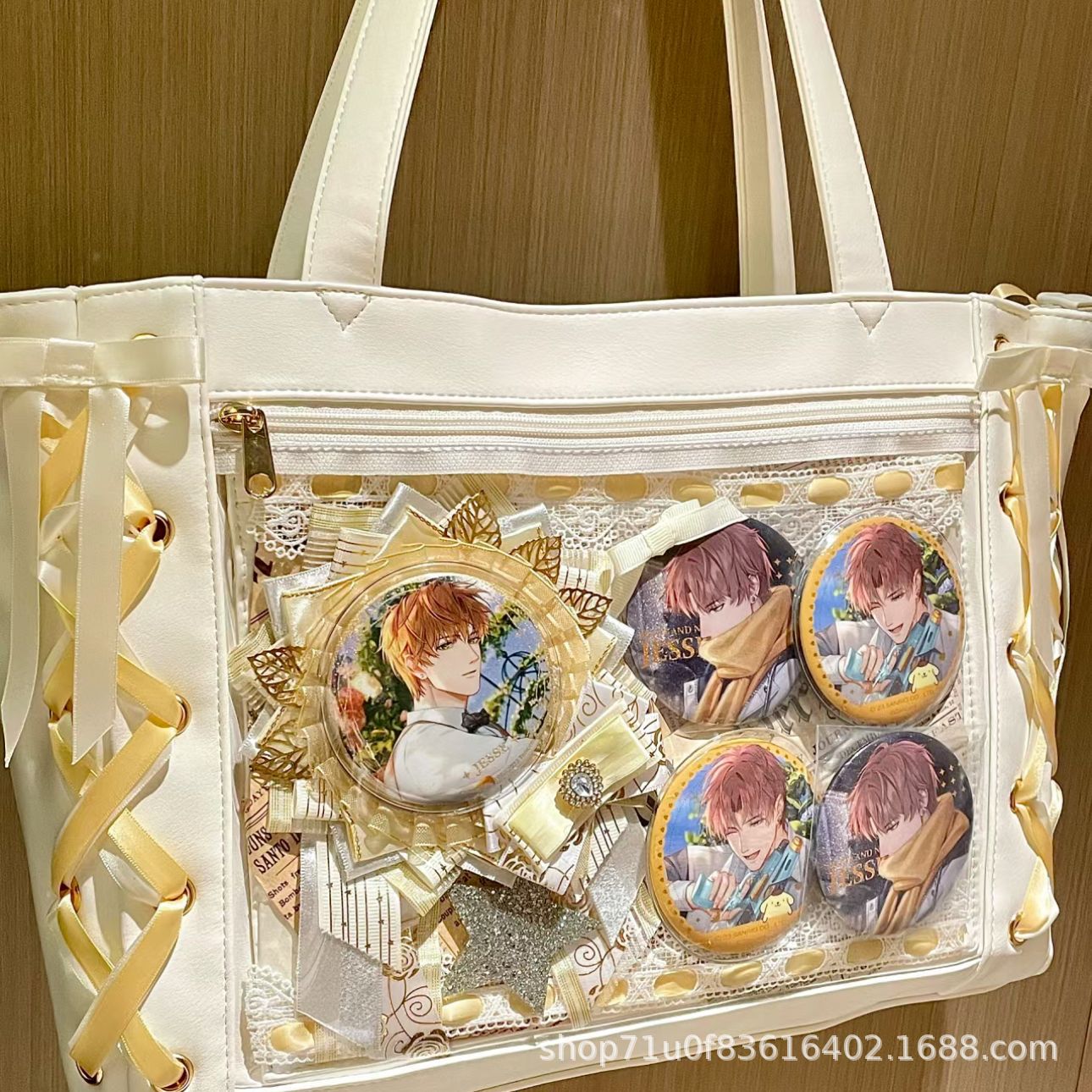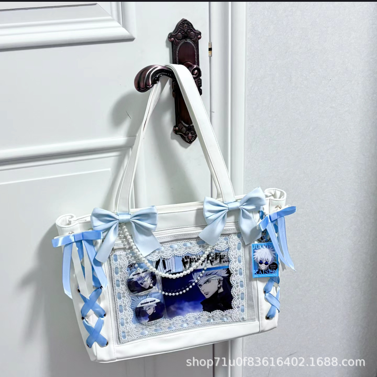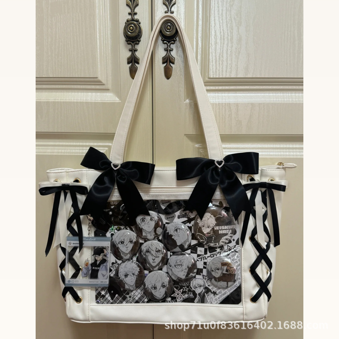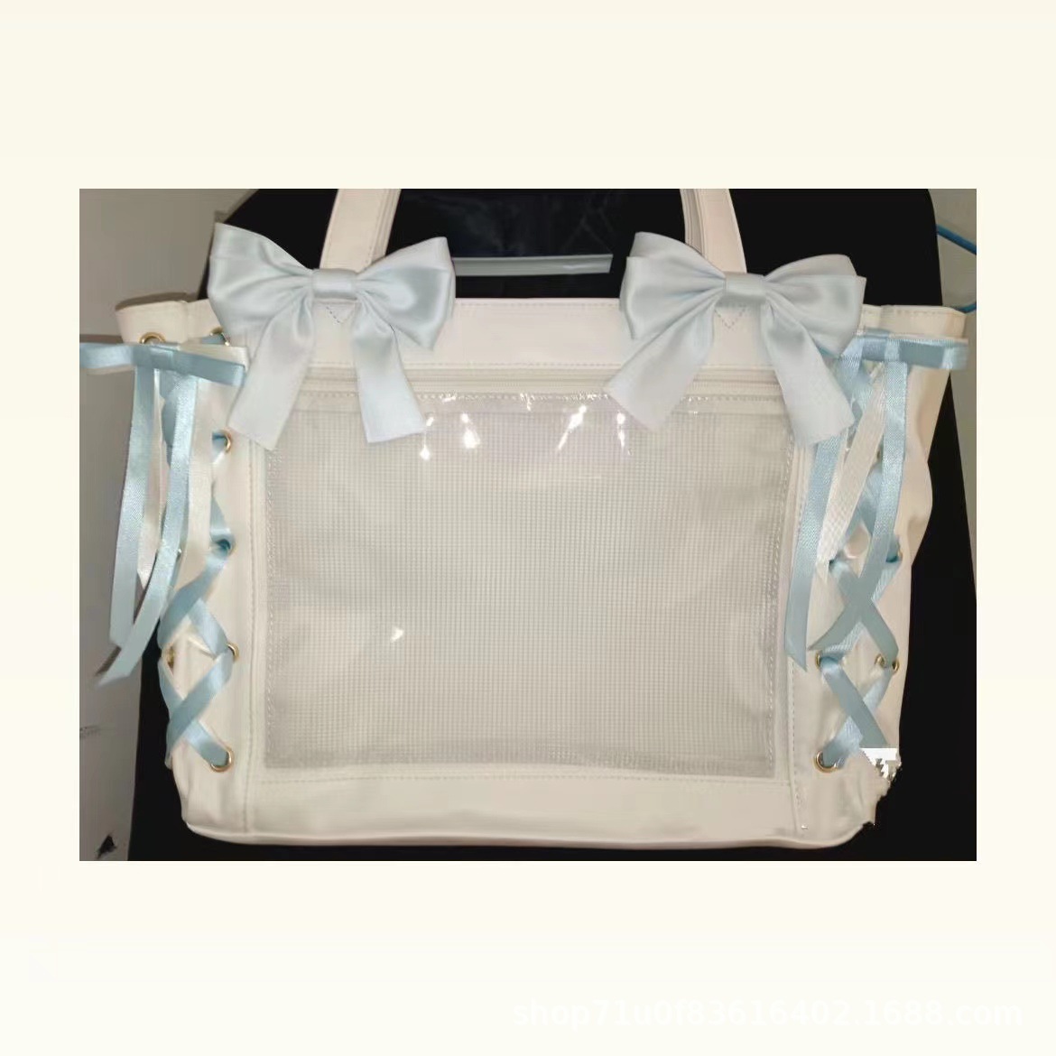 일본 실크 킹 통증 가방 리본 활 귀여운 핸드백 대용량 클리어 곡물 어깨 가방스토어 가기