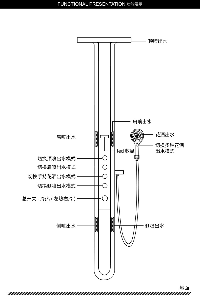 욕실 디지털 디스플레이 샤워 세트 가정용 샤워 화장실 목욕 욕실 압력 공기 주입 기술