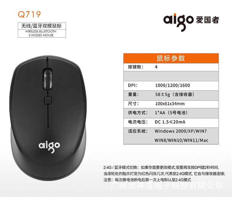 도매 사랑 guo Q719 블루투스 2.4g 무선 마우스 듀얼 모드 사무실 비즈니스 노트북스토어 가기
