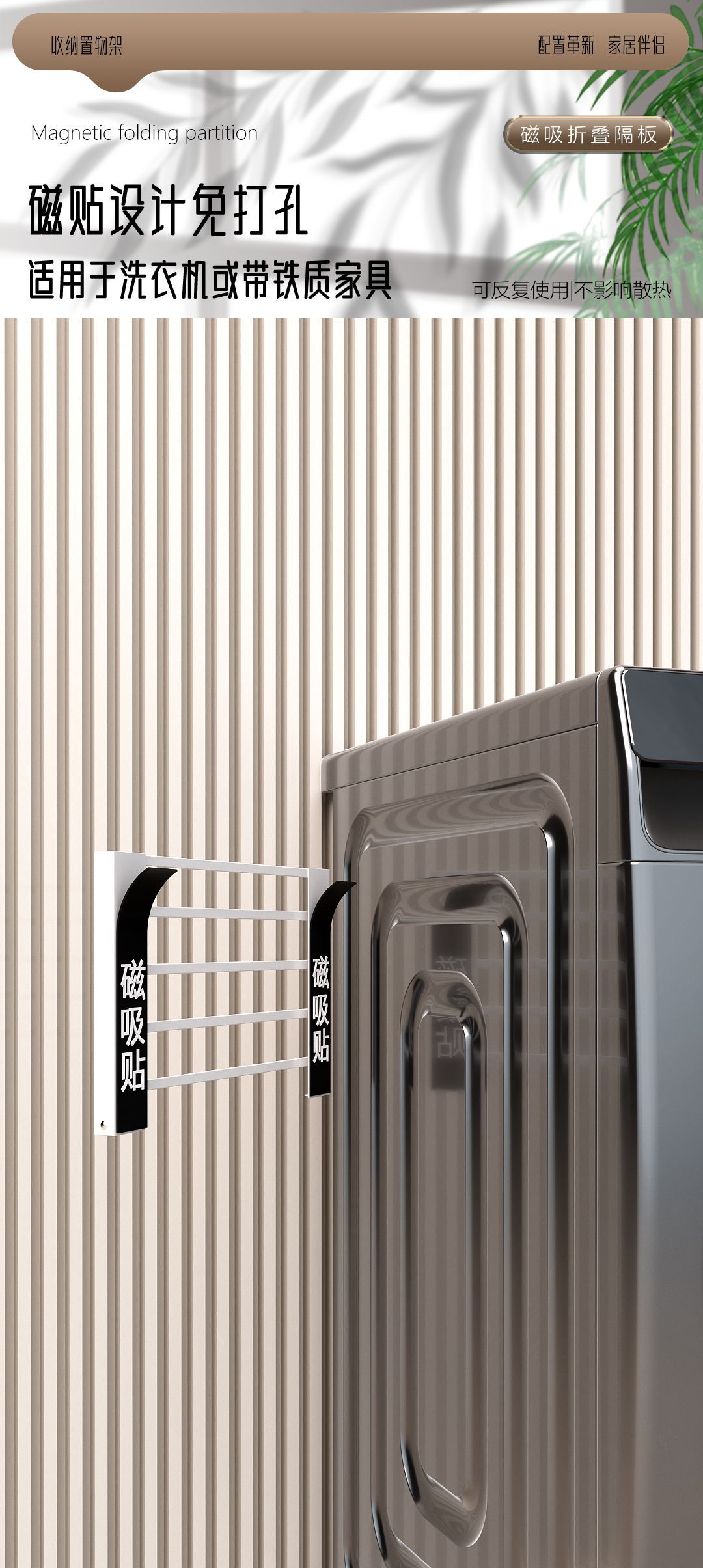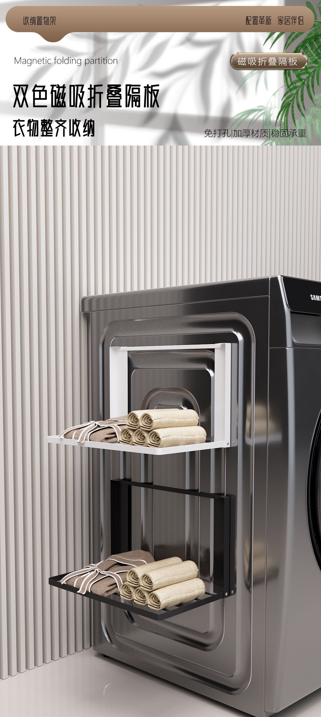마그네틱 폴딩 선반 세탁기 사이드 랙 의류 선반 펀치 프리 냉장고 사이드 랙 걸이 스토리지 랙