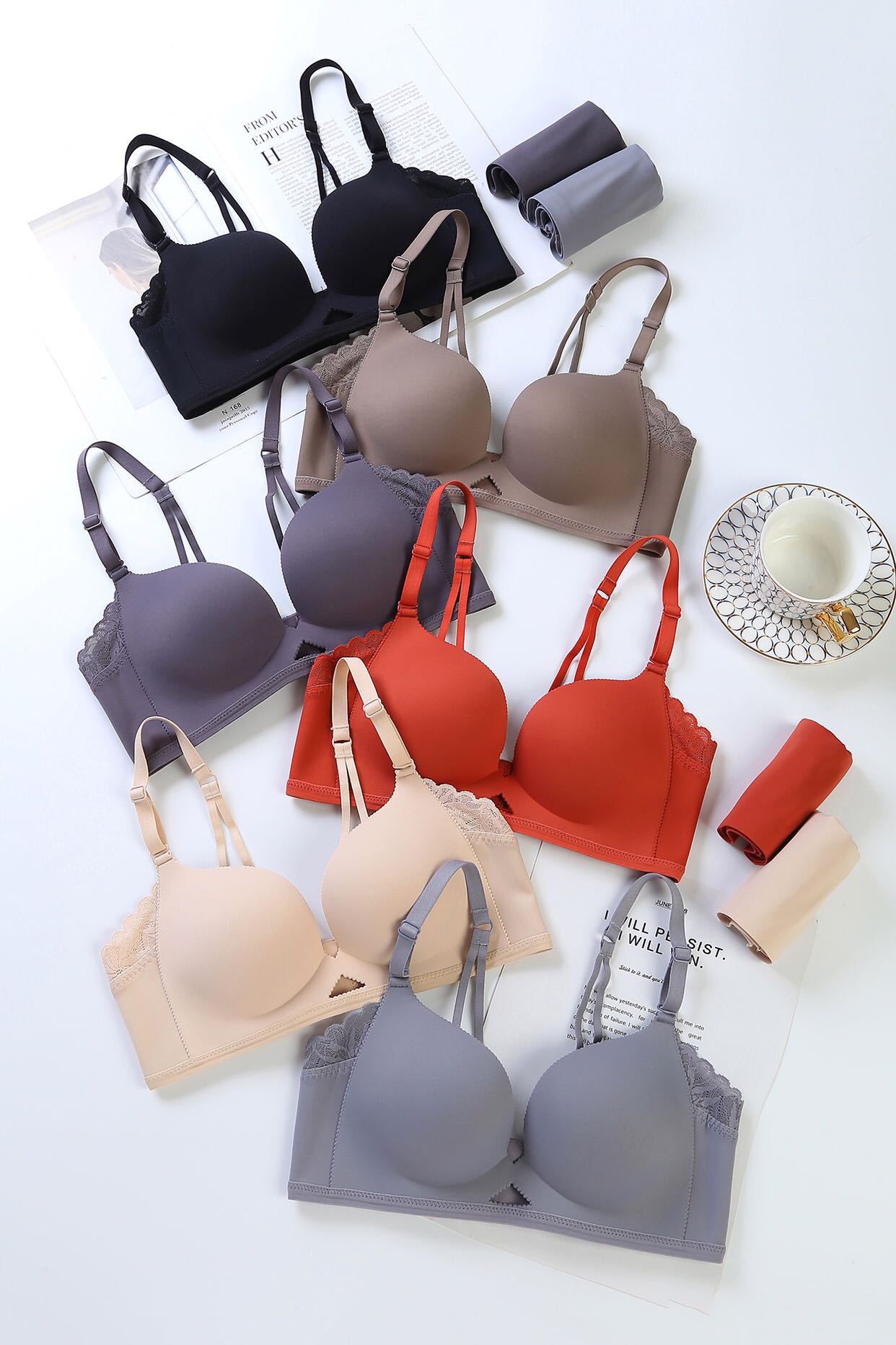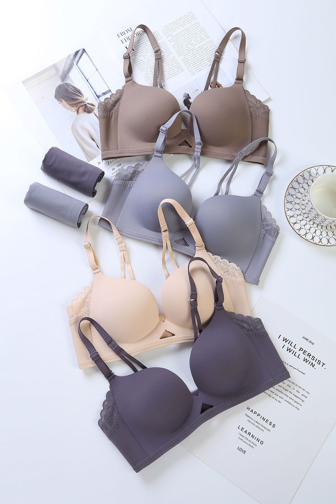 일본 라이트 카톡 브라 세트 추적없는 푸시 업 조정 가능한 가트 얇은 작은 가슴 빈 컵 속옷스토어 가기