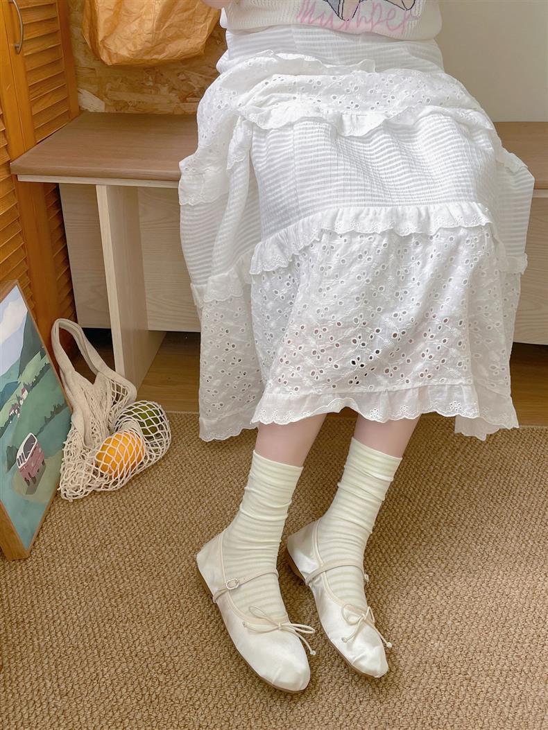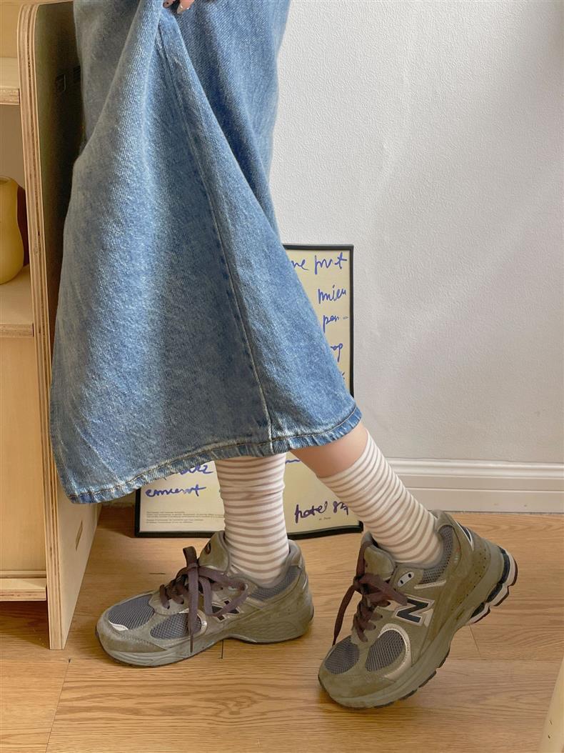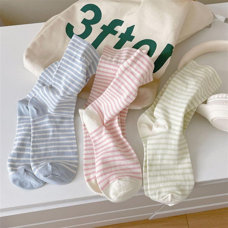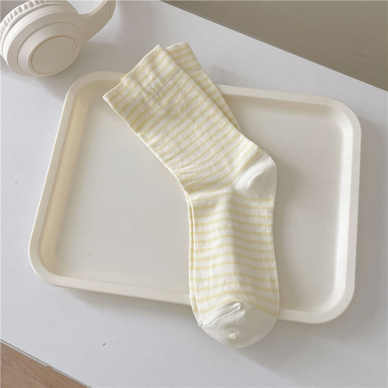 크림 스트라이프 양말 어린이 중간 길이 양말 봄 및 여름 얇은 간단한 정보 유행 한국 스타일 학생 일본식 여름 스타킹