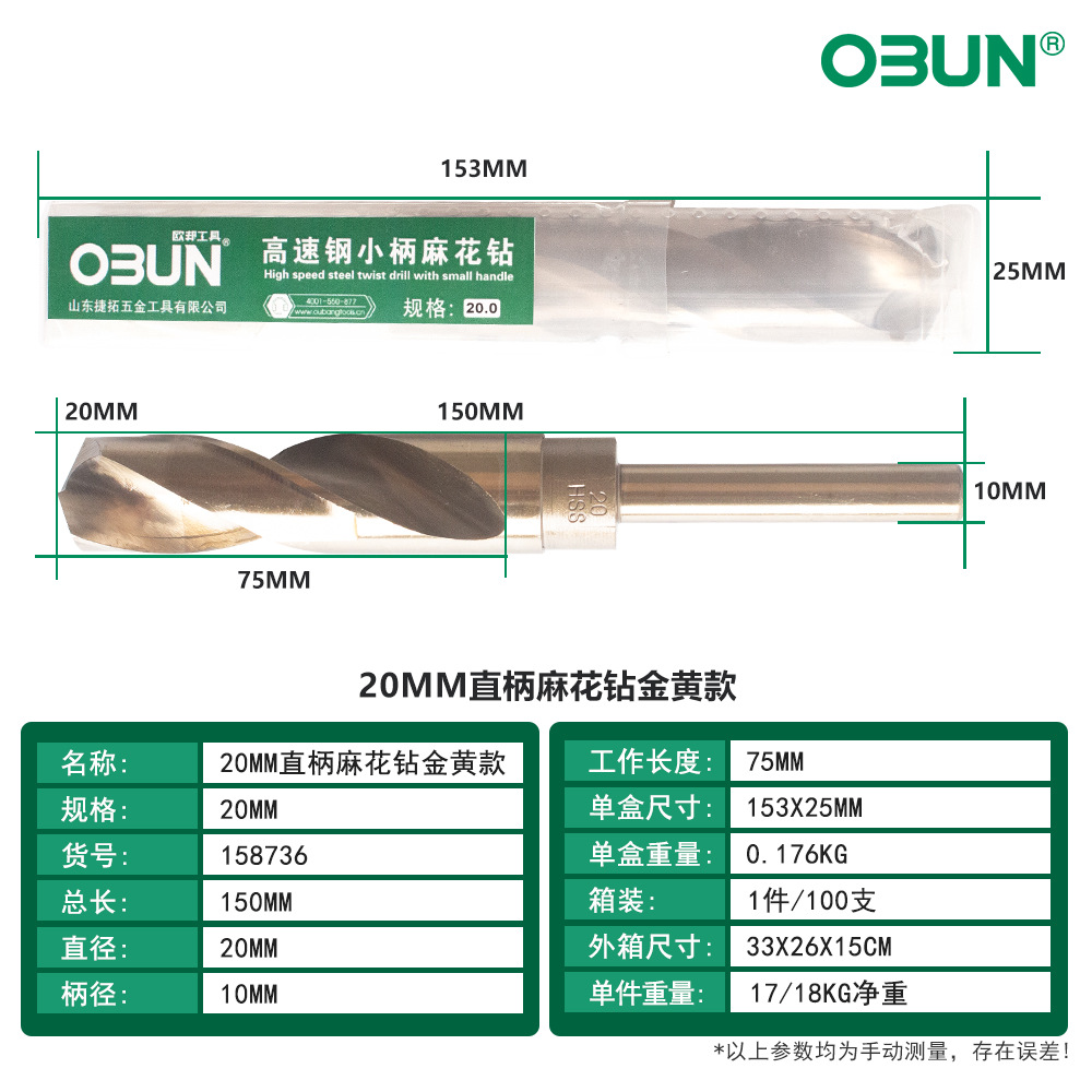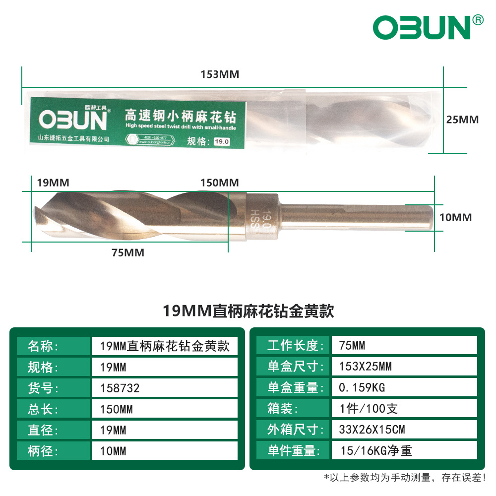 • 19mm 스트레이트 생크 트위스트 드릴 골든 내마모성