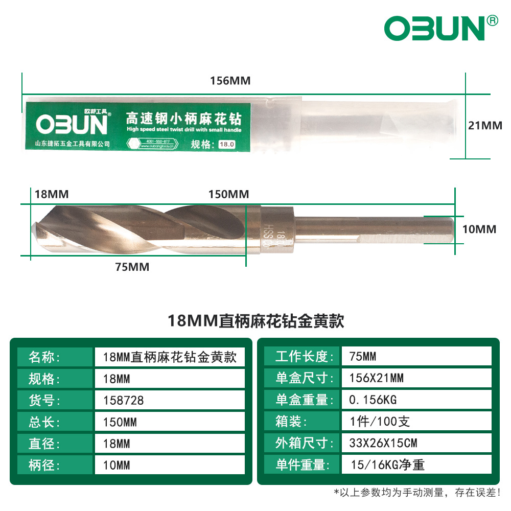 • 18.5mm 스트레이트 생크 트위스트 드릴 골든 내마모성