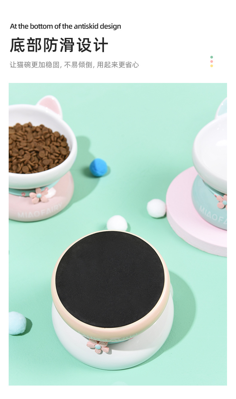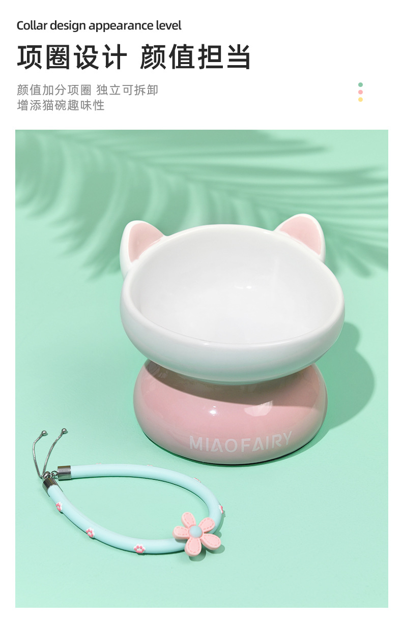 Meow Xianer 고양이 그릇 세라믹 비스듬한 입 큰 구경 보호 자궁 경부 척추 반대로 뒤집는 고양이와 개 음식 분지 번호 높은 발 안티 블랙 턱