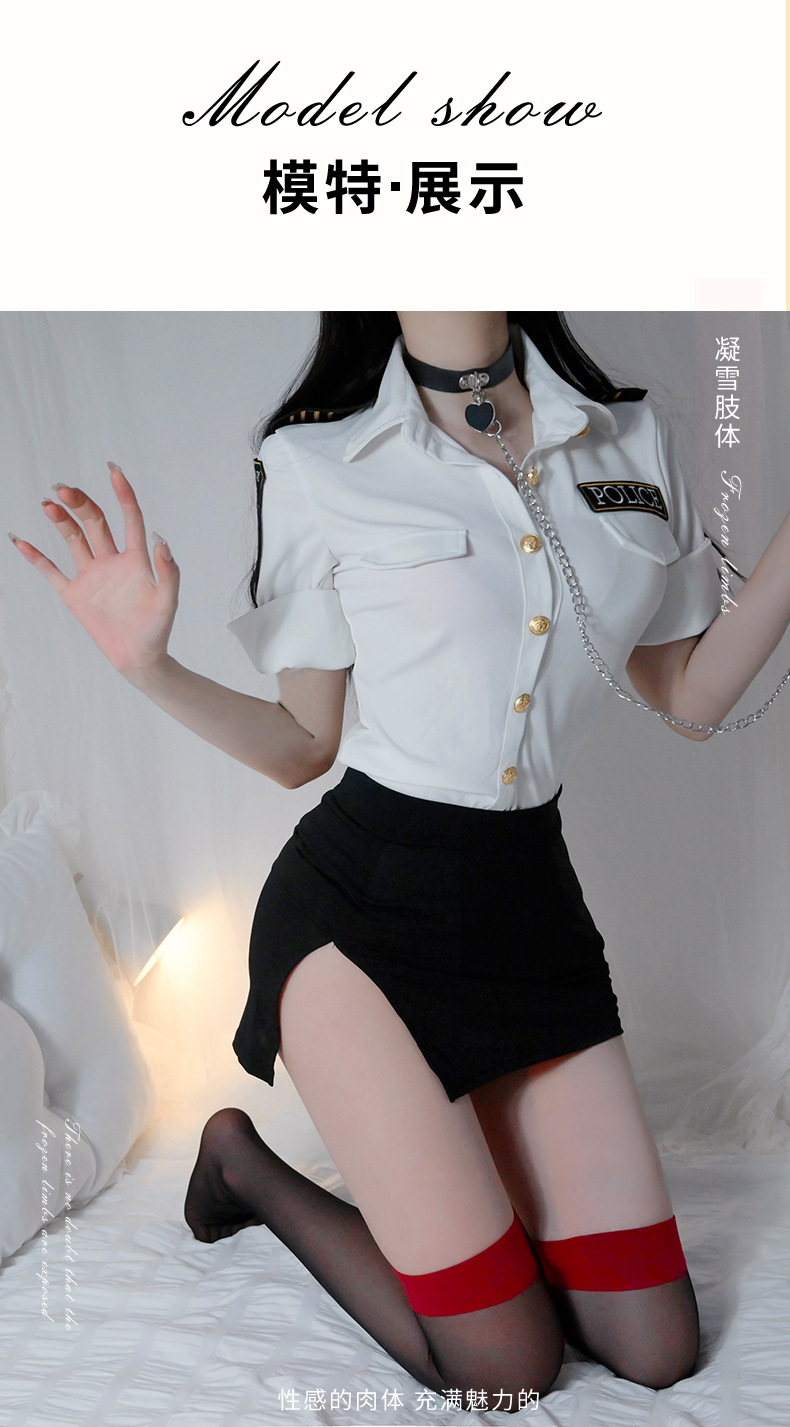 • 경찰 세트 "블라우스 스커트" 레드 블랙 스타킹
