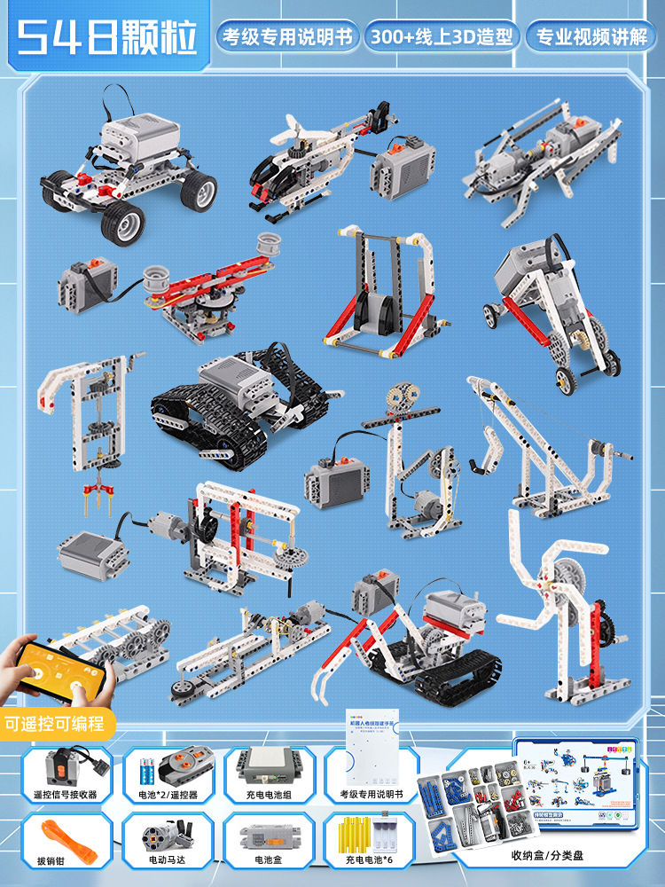 • [파워 세트 3세트] 입자 1263개(리모컨 프로그래밍) 온라인 모델링 500개(충전식 배터리 18개, 대형 설명서, 보관함 포함)