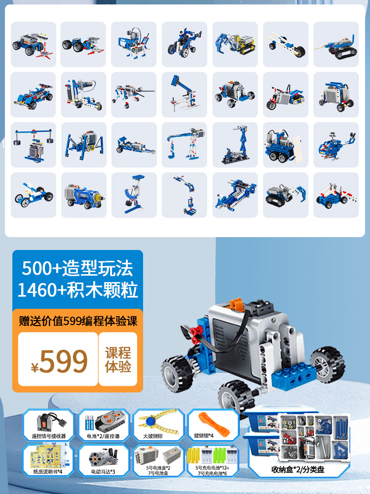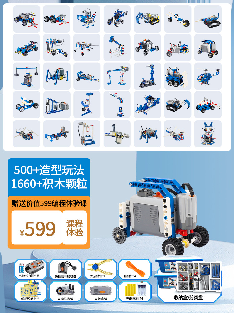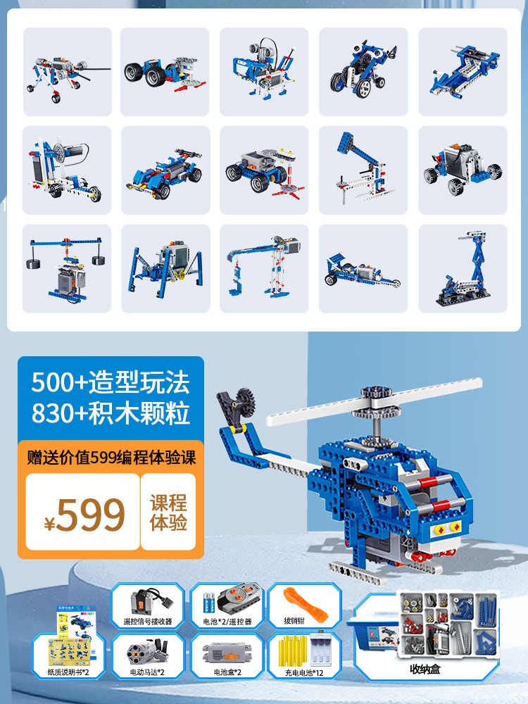 • [듀얼 파워 세트] 입자 837개(원격 제어 프로그래밍) 500개의 온라인 3D 모델링(종이 사용 설명서 30개, 배터리 15개, 보관함 포함)