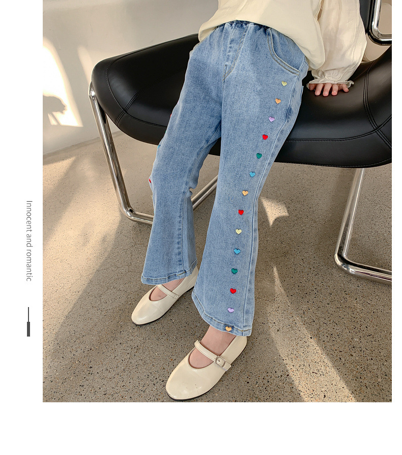 아동복 2025 봄, 가을 스타일 여아 청바지 여아 스트레치 슬림 팬츠 아동용 다용도 바지 플레어 팬츠스토어 가기