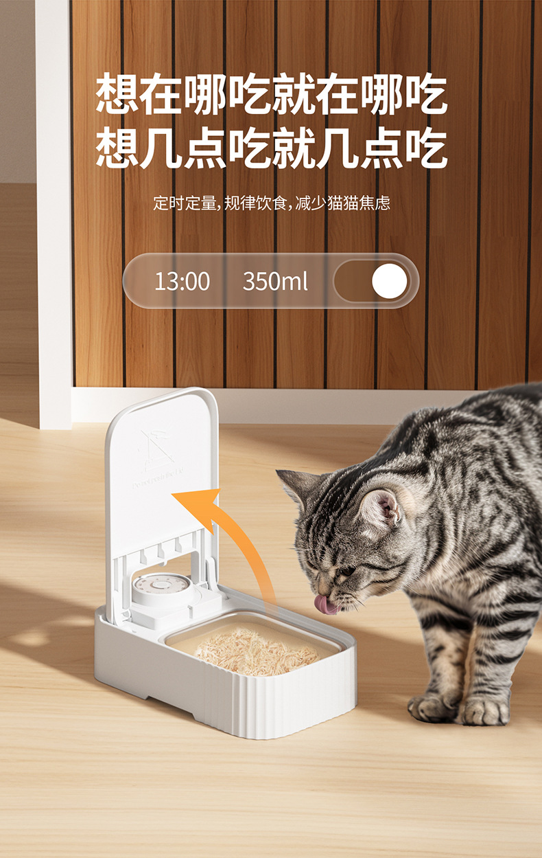 1.定时定量---可视化定时闹钟,可设置喂食时间及控制饭量,精准配比更健康;