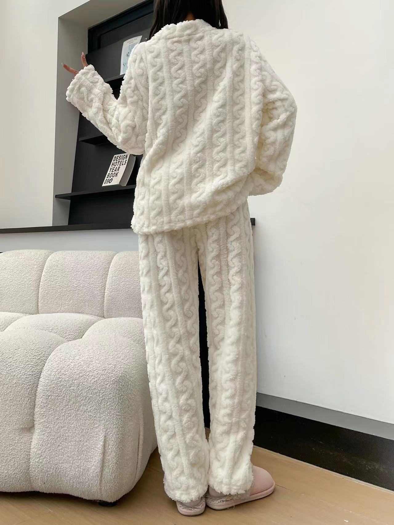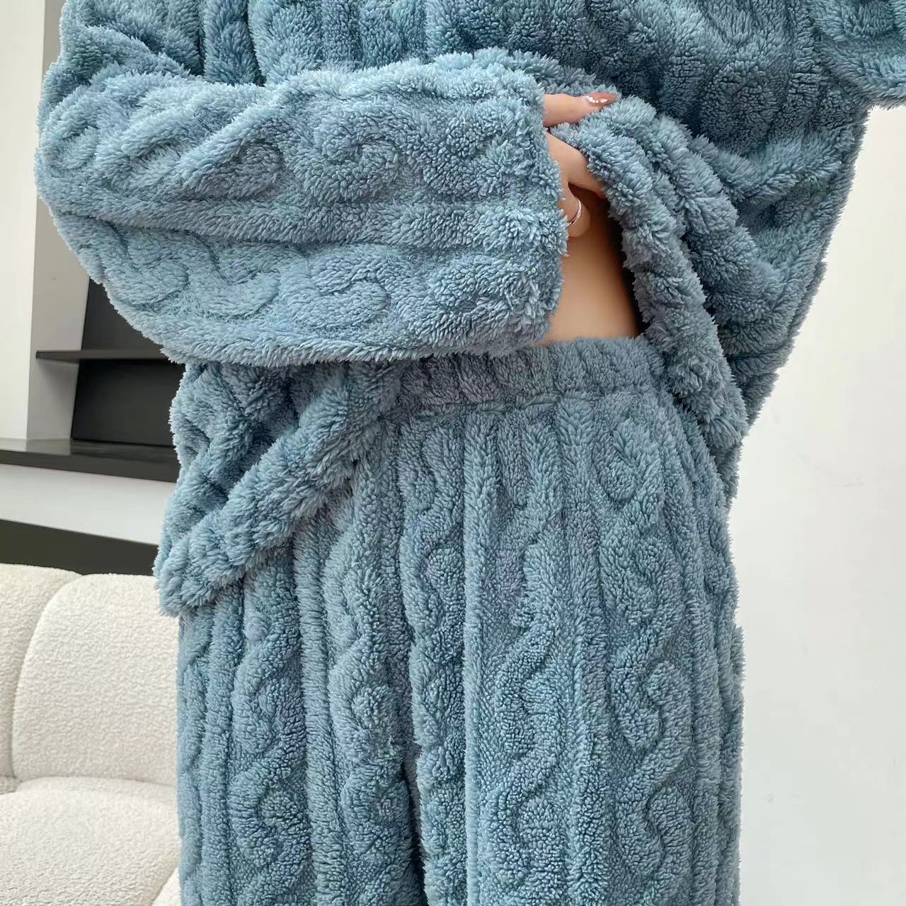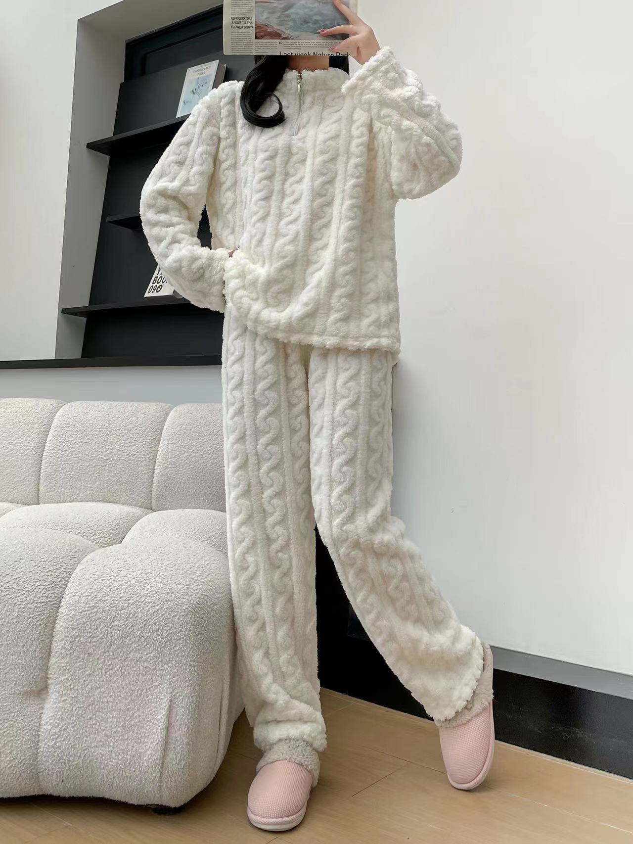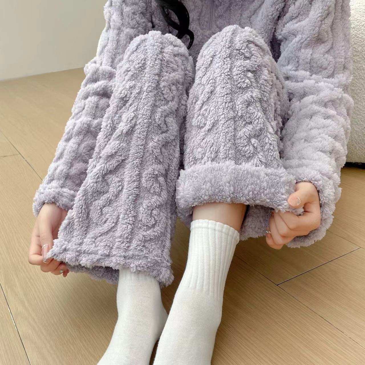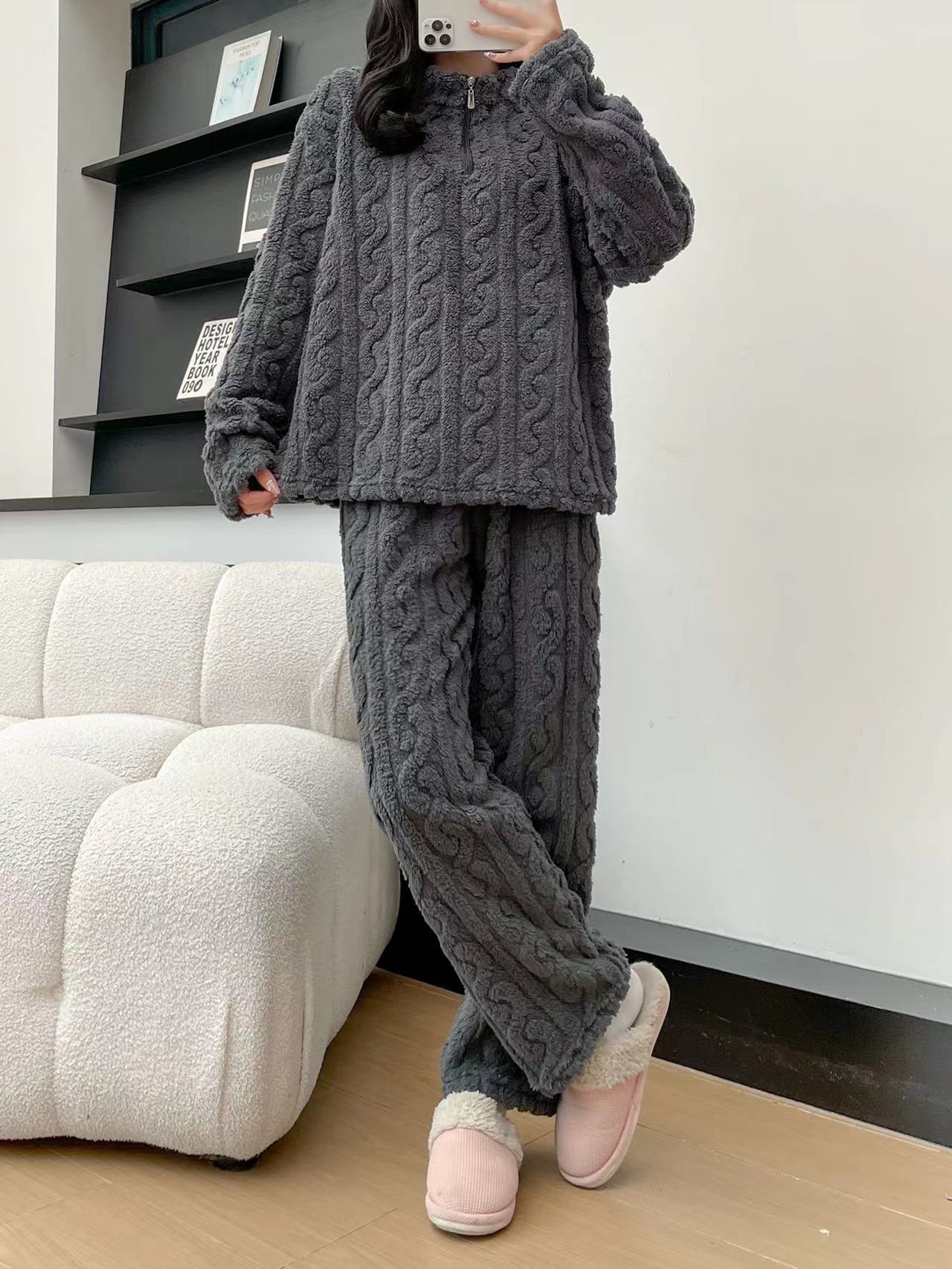 가을과 겨울 자카드 지퍼 플란넬 홈 의류 세트 기모 두껍게 된 외부 착용 지퍼 카디건 여성의 따뜻한 잠옷