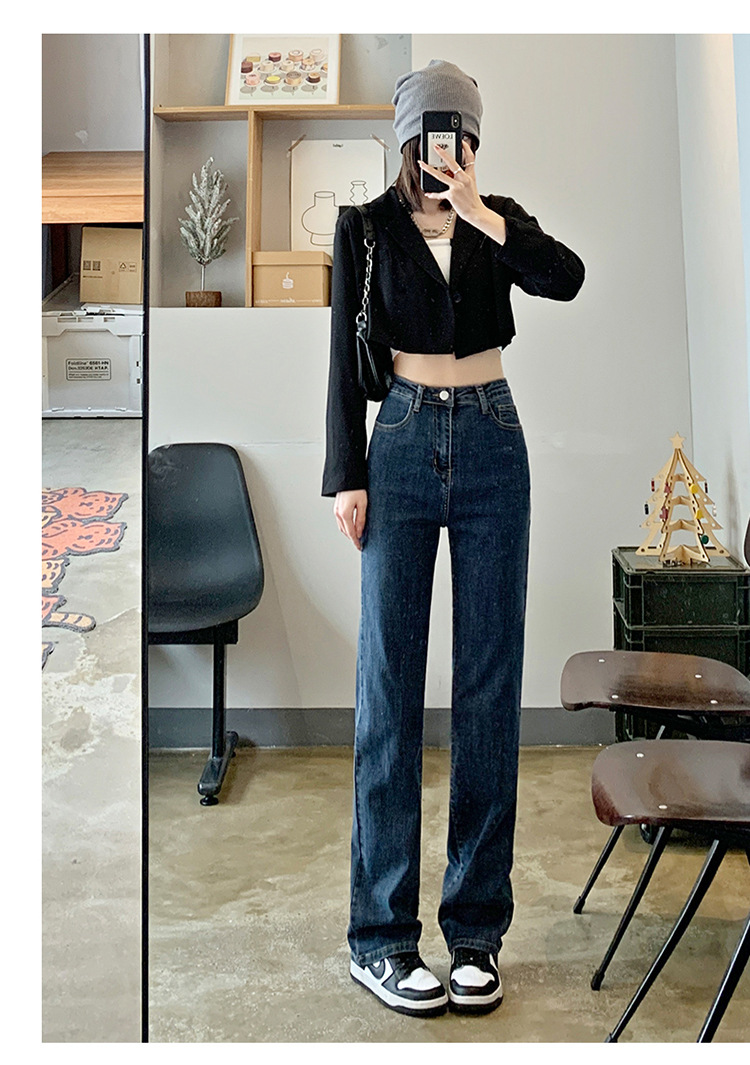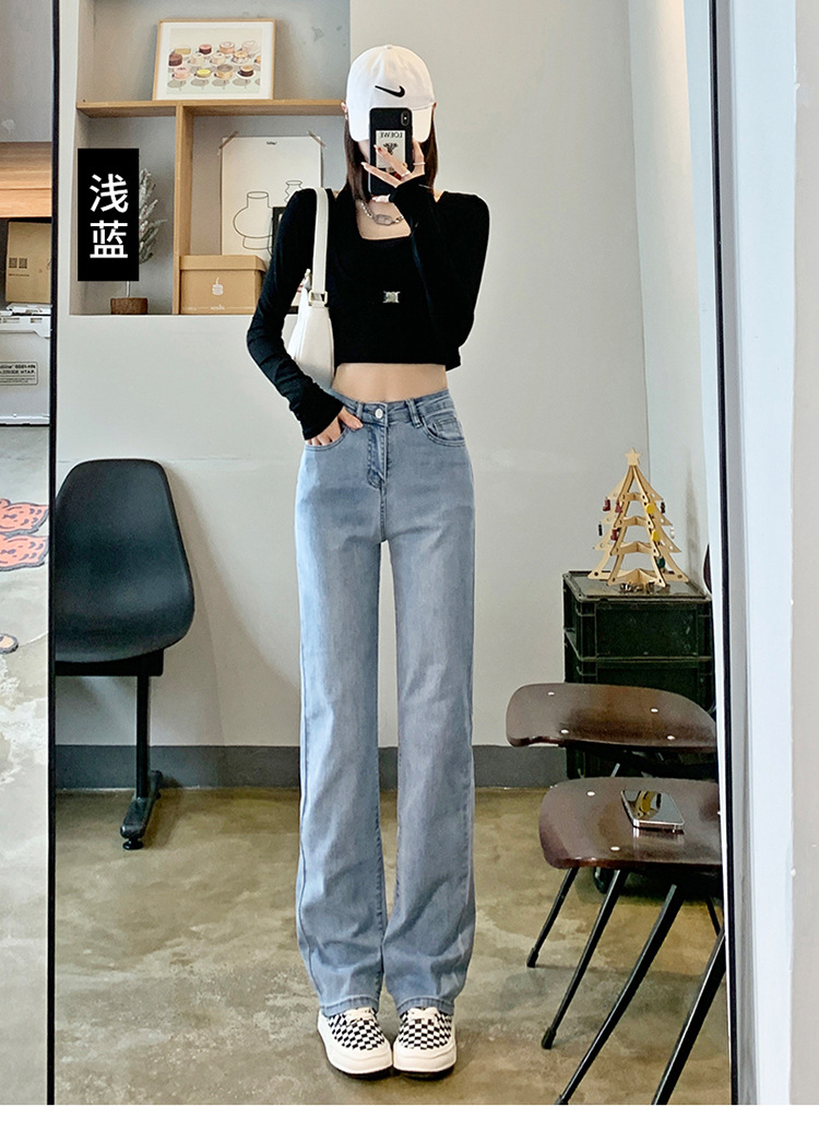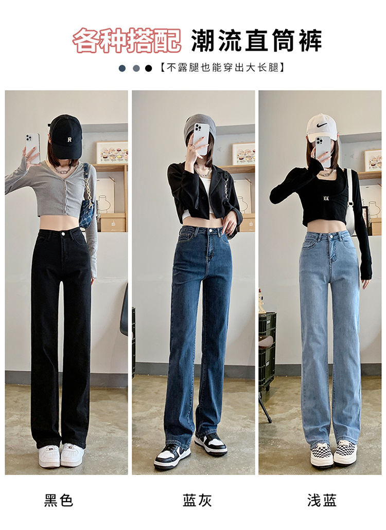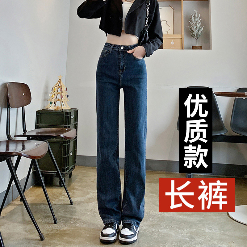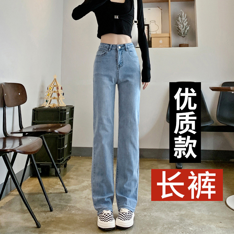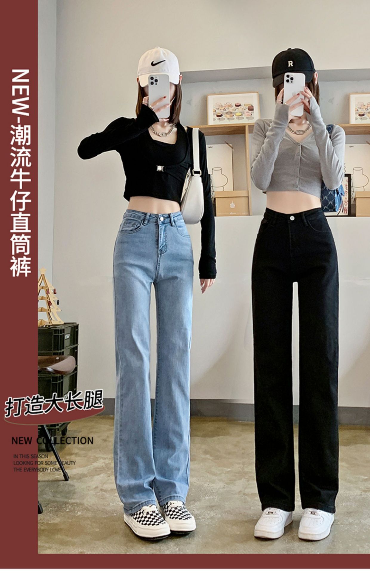 직선 다리 청바지 여성의 높은 허리 슬리밍 2023 새로운 봄과 여름 느슨한 좁은 버전 얇은 넓은 다리 스트레치 연기 파이프 가을스토어 가기