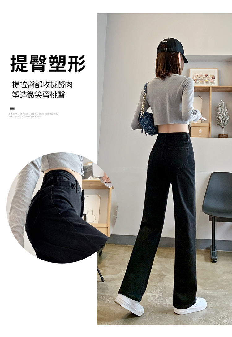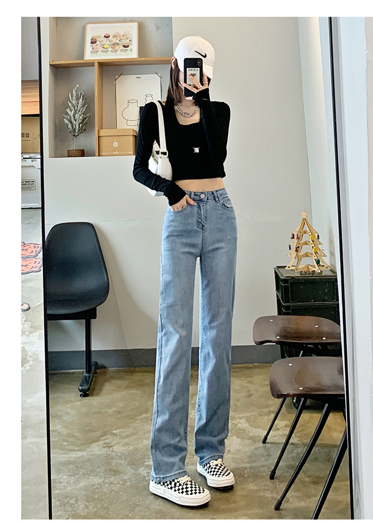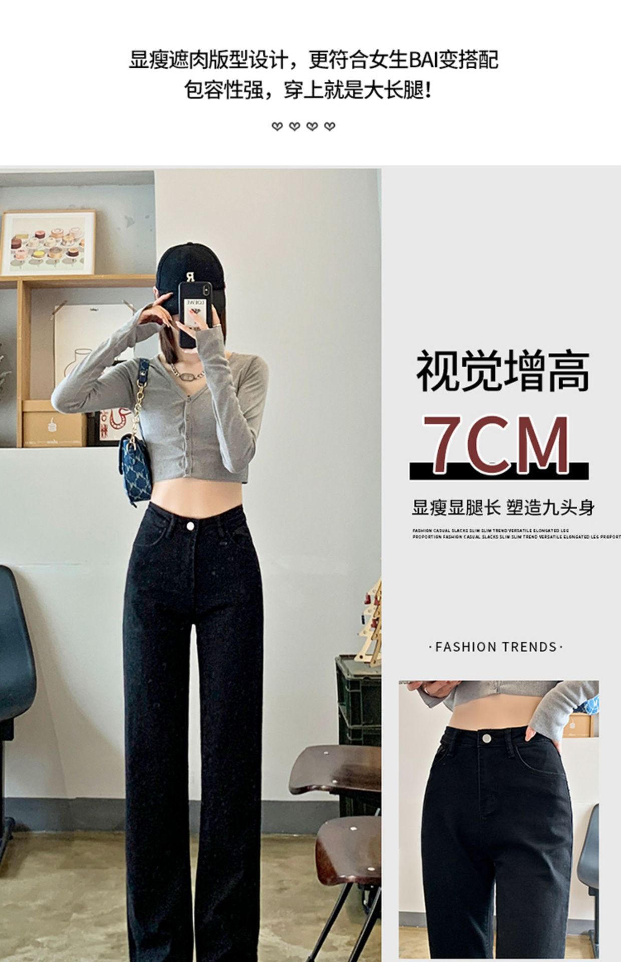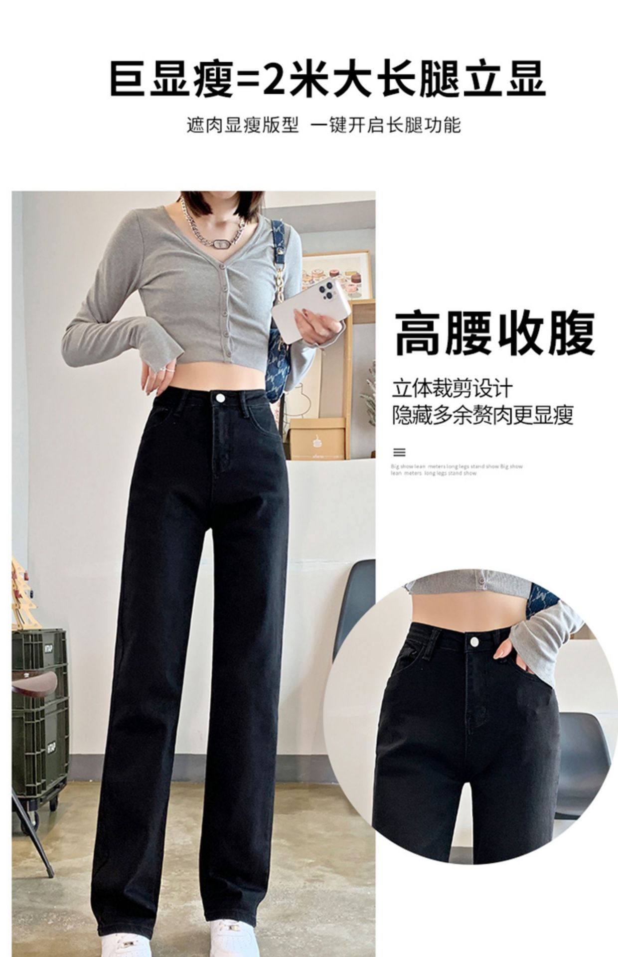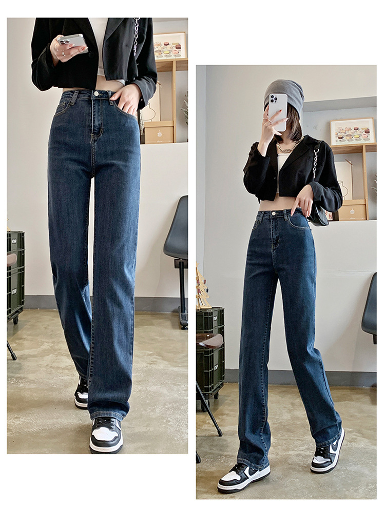 직선 다리 청바지 여성의 높은 허리 슬리밍 2023 새로운 봄과 여름 느슨한 좁은 버전 얇은 넓은 다리 스트레치 연기 파이프 가을스토어 가기