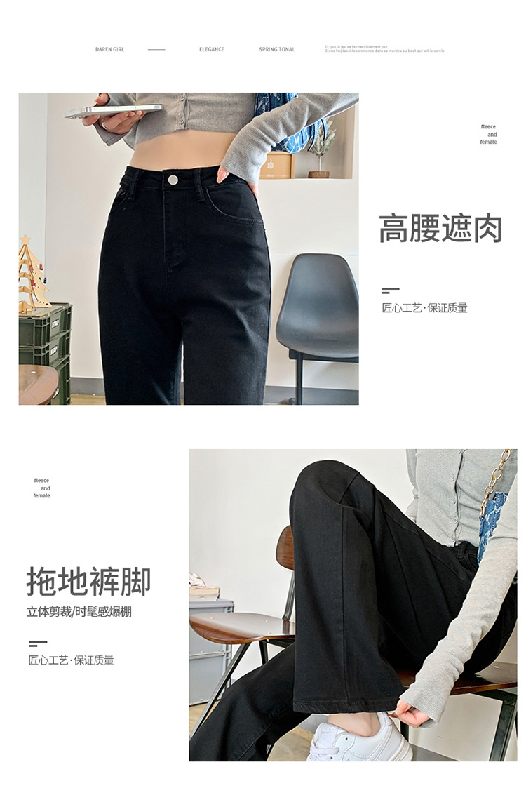 직선 다리 청바지 여성의 높은 허리 슬리밍 2023 새로운 봄과 여름 느슨한 좁은 버전 얇은 넓은 다리 스트레치 연기 파이프 가을