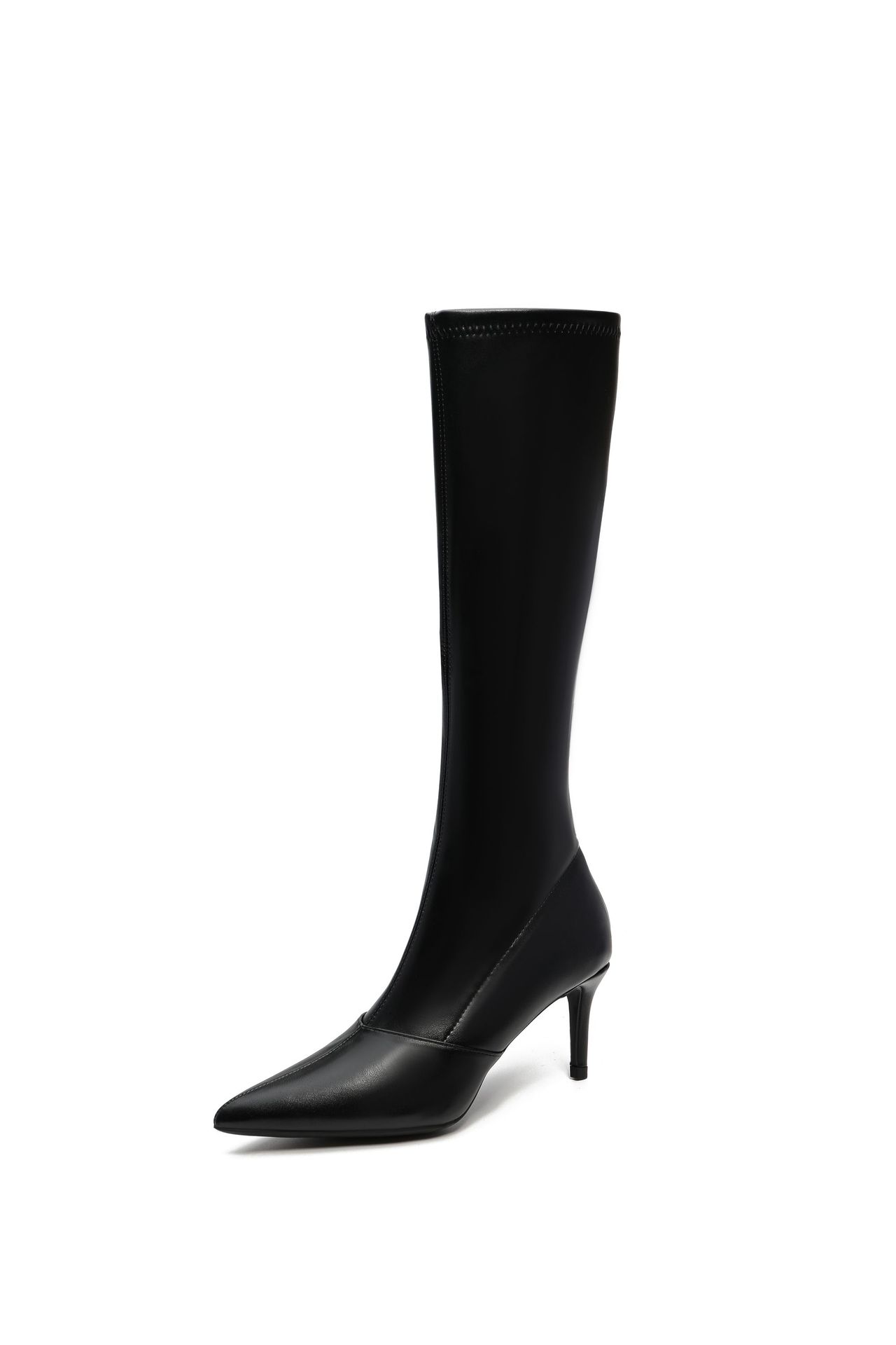 뾰족한 하이힐 부츠 2024 새로운 도착 얇은 힐 하이 부츠 여성 사이드 지퍼 라이더 부츠 블랙 섹시 스키니 부츠스토어 가기