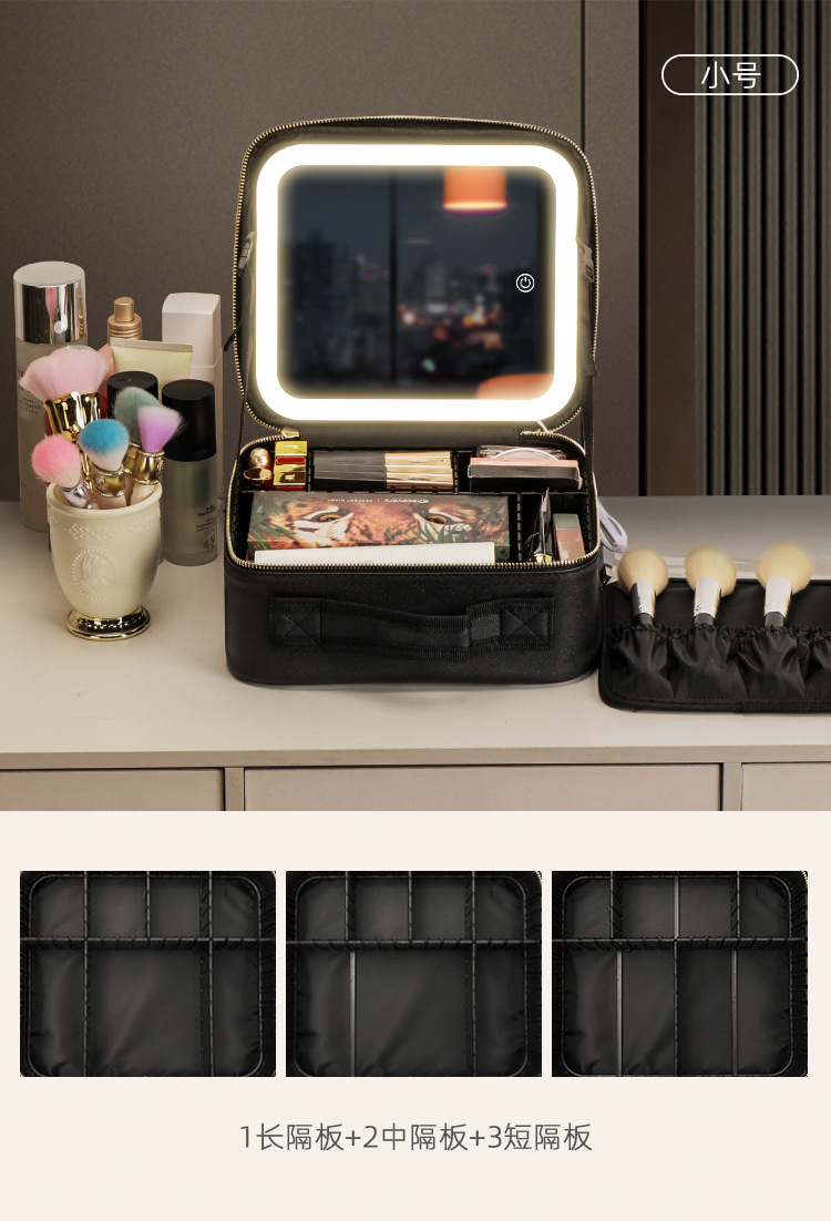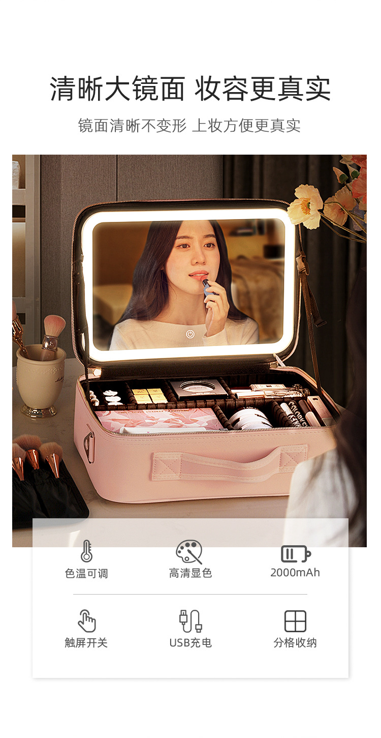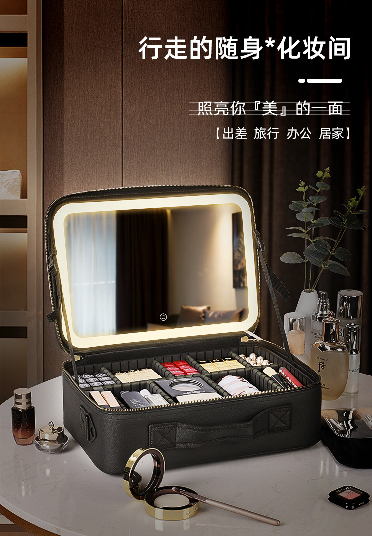 새로운 휴대용 대용량 전문 메이크업 가방 인스타그램 LED 빛과 거울 화장품 가방 다기능 2024스토어 가기