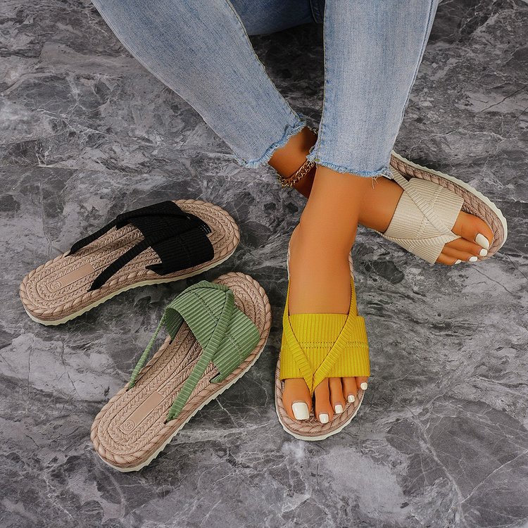 대외 무역 평면 바닥 클립 발가락 유럽과 미국의 작은 밀짚 플립 플롭 여성 2024 여름 새 플러스 사이즈 레저 샌들 및 슬리퍼스토어 가기