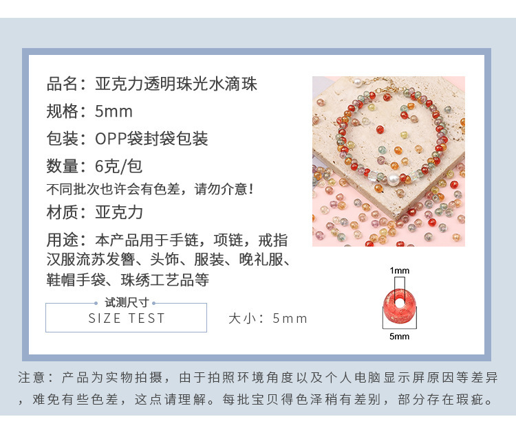 5mm 아크릴 투명 진주 빛 드롭 구슬 DIY 수제 구슬 팔찌 목걸이 장식 액세서리
