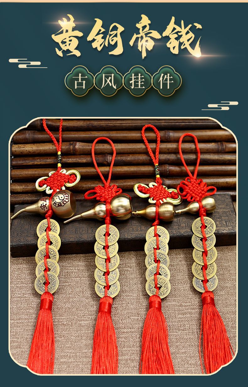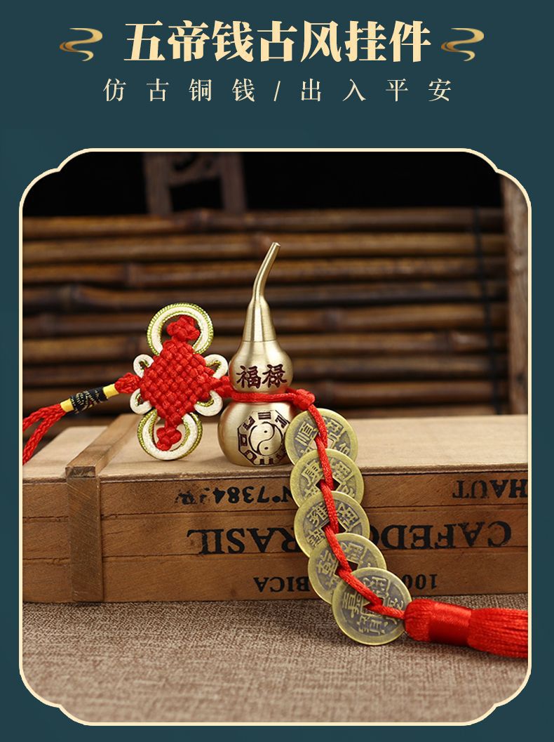 순수한 구리 조롱박 중국 매듭 다섯 황제 돈 구리 조롱박 문 feng shui 거실 문 펜던트 매달려 문자열 도매 큰스토어 가기