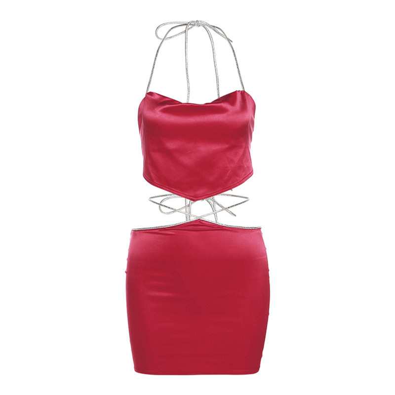유럽과 미국의 2023 봄 여성의 새로운 교수형 목 백리스 슬림 조끼 높은 허리 섹시한 엉덩이 치마 세트