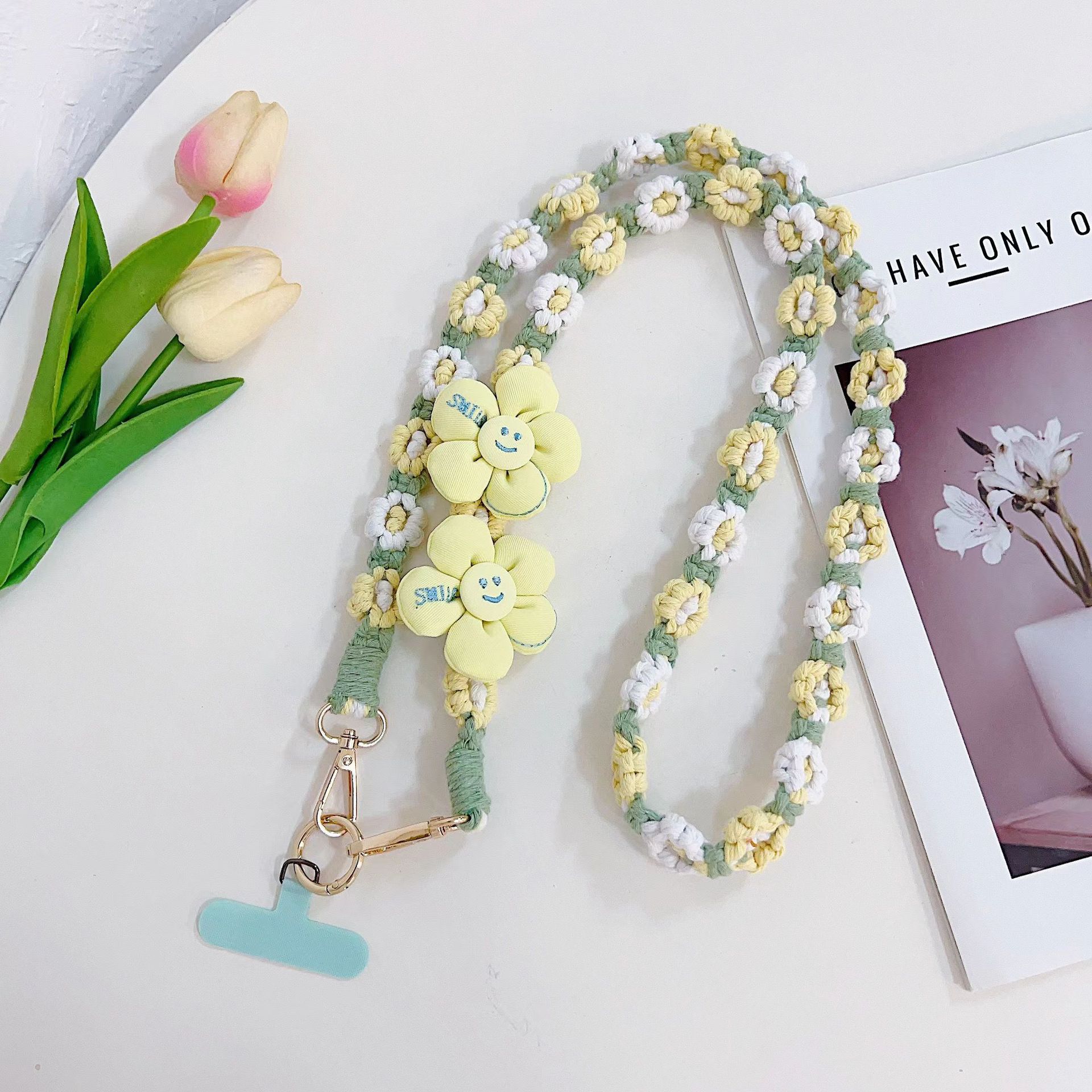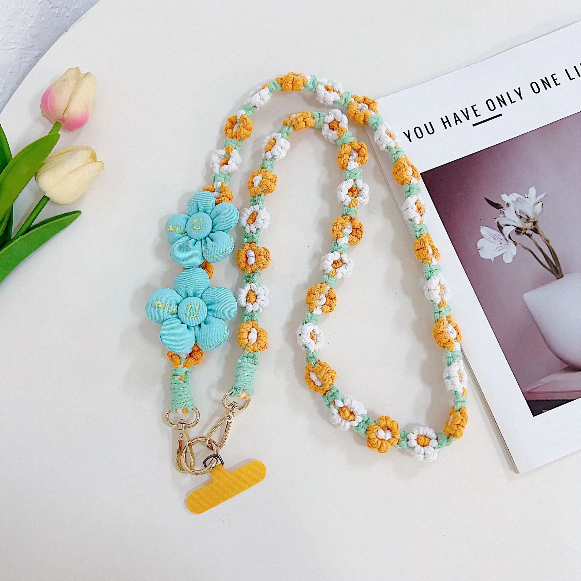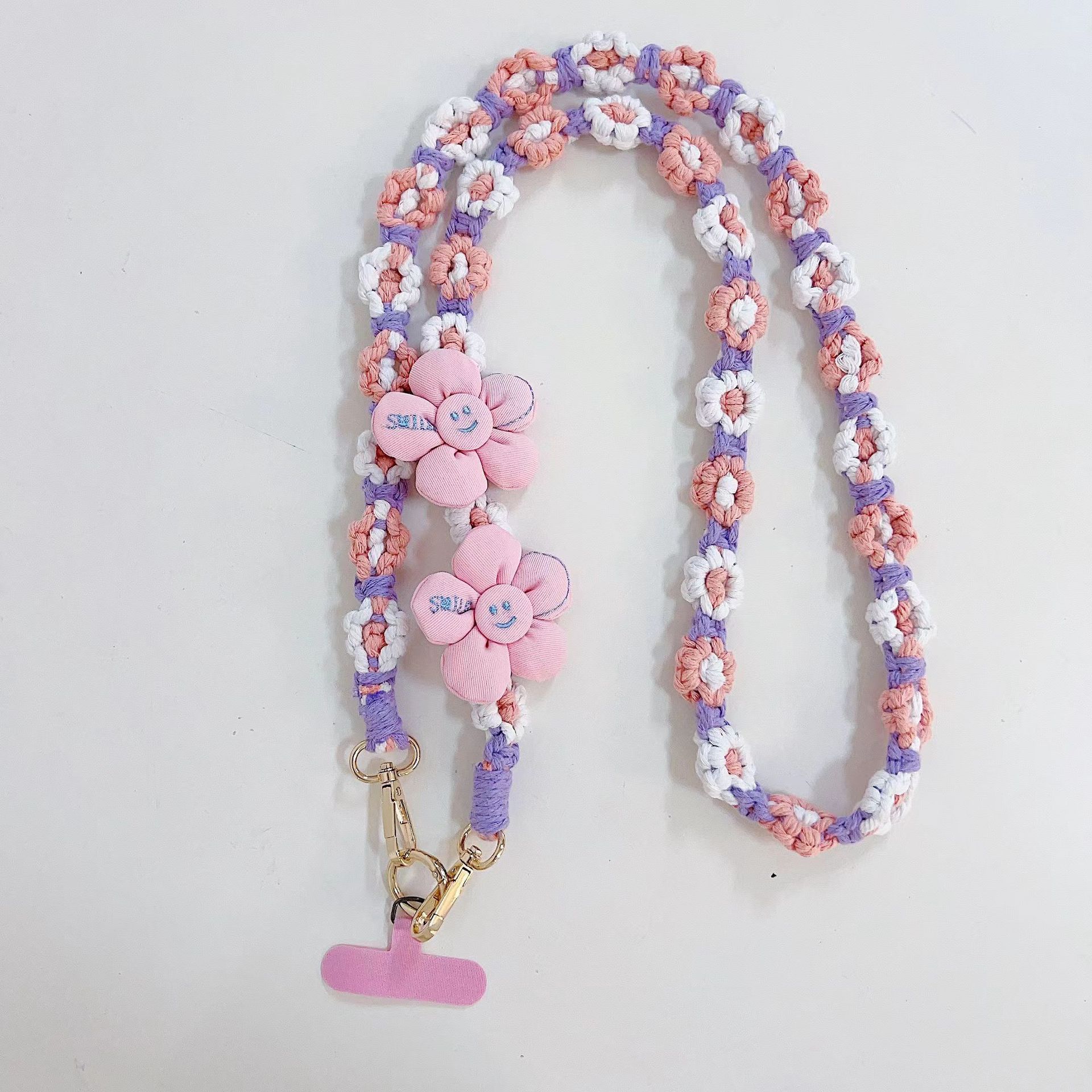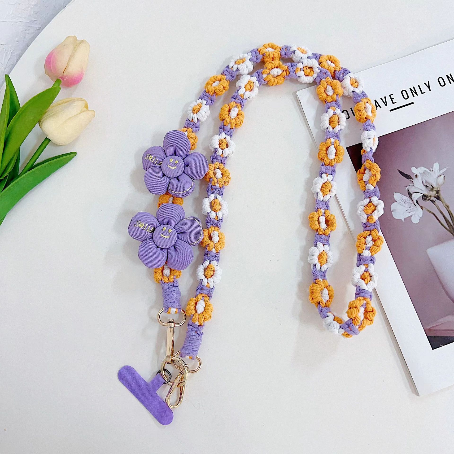 휴대 전화 끈 긴 크로스 바디 삼색 손으로 짠 더블 버튼 끈 휴대 전화 로프 단일 버클 매달린 체인 여성의 크로스 바디 꽃