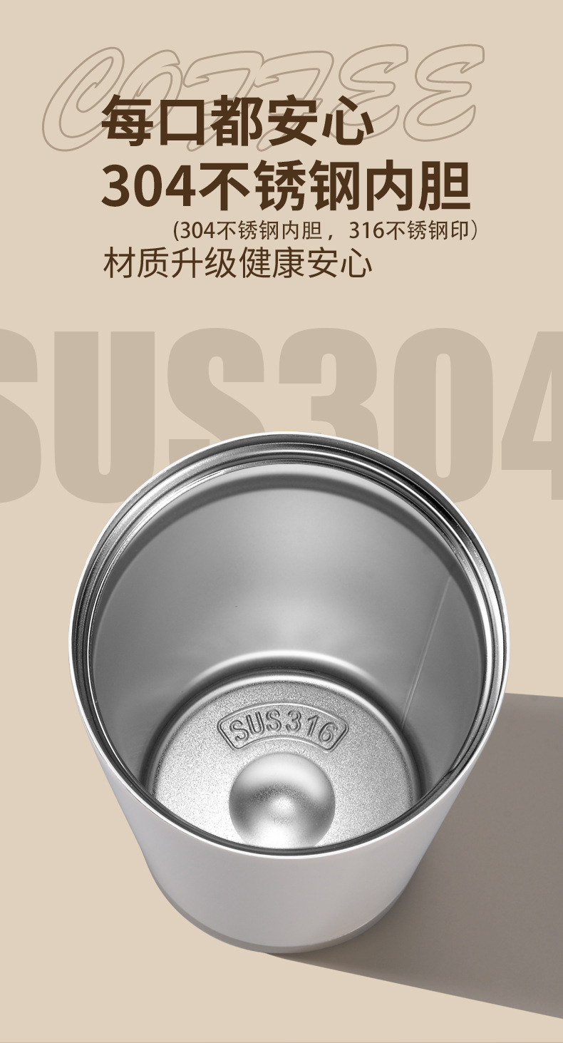 • 커피컵 자스민 (316 스테인리스 스틸 내피, 식품 등급 PP 플라스틱 뚜껑)