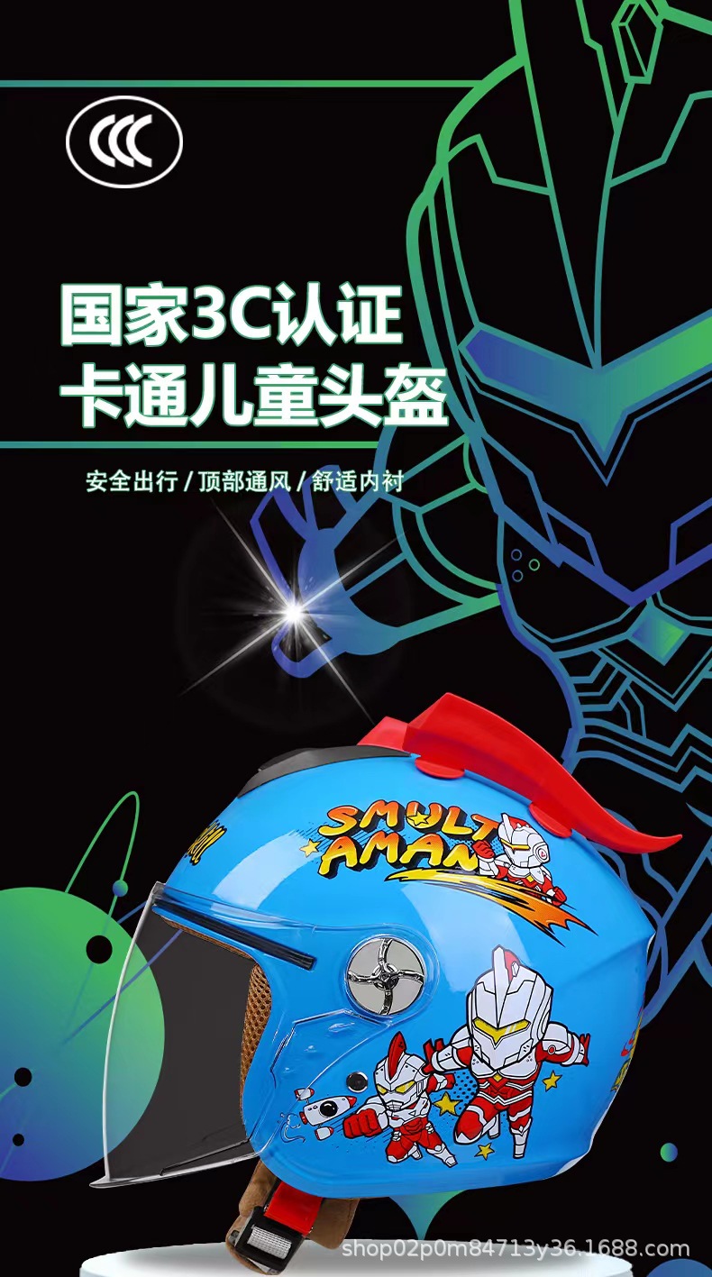 공장 새로운 국가 표준 어린이 전기 자동차 헬멧 소년과 소녀 귀여운 아기 사계절 반 헬멧 만화 겨울 헬멧스토어 가기
