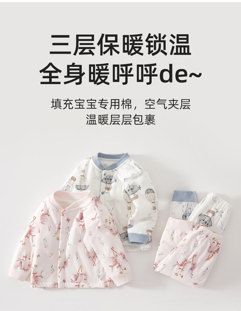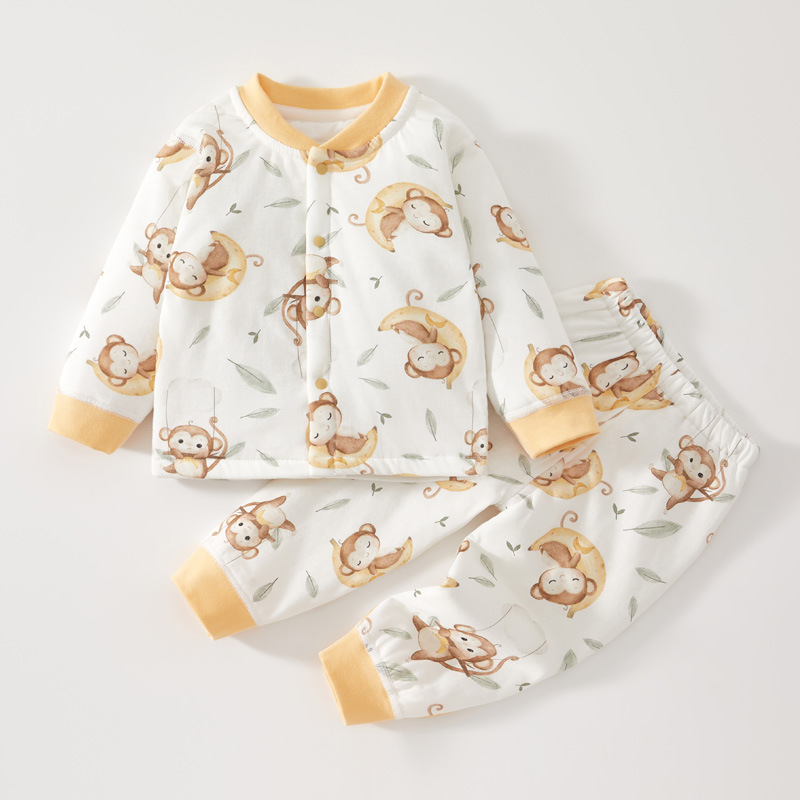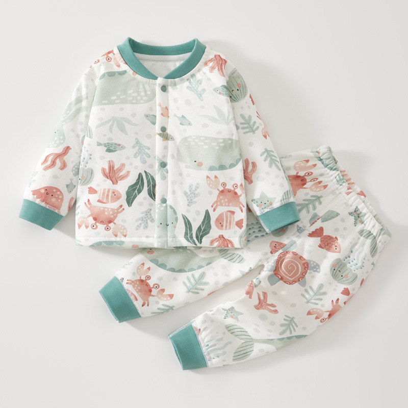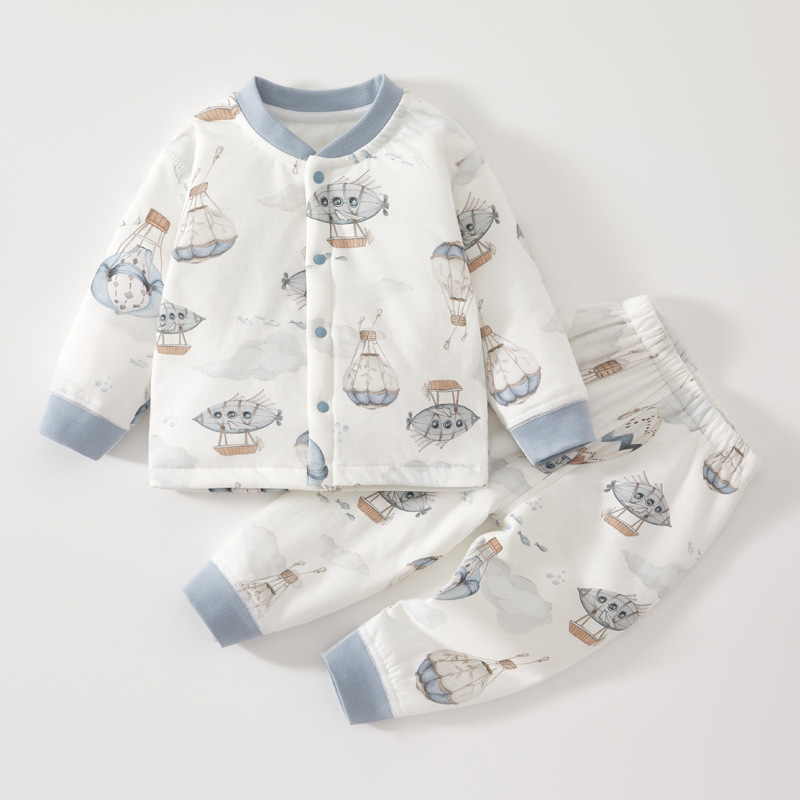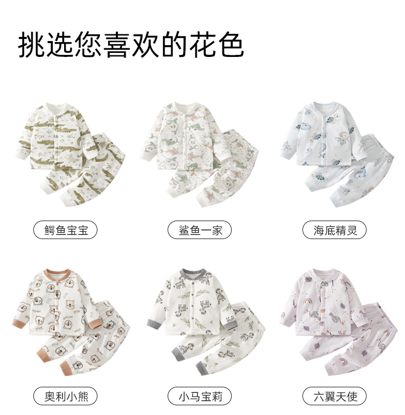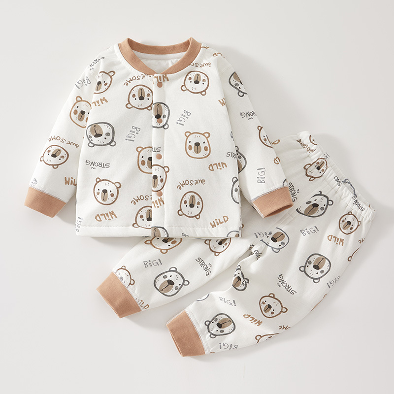 아기 옷, 가을 겨울 따뜻한 신생아 누비 잠옷, 신생아 투피스 세트, 라운드 넥 순면 스플릿 슈트스토어 가기