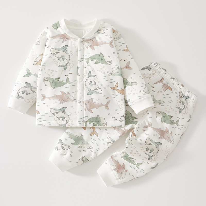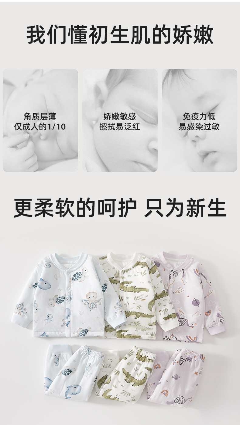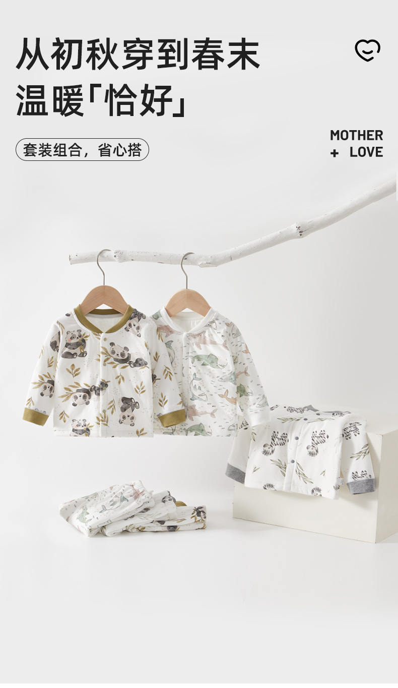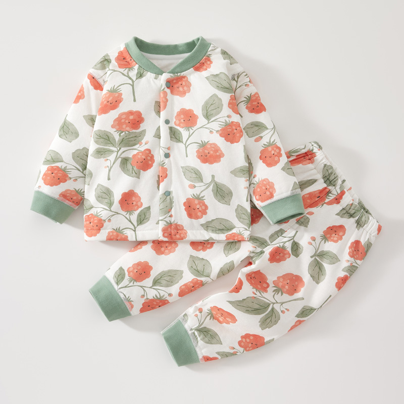 아기 옷, 가을 겨울 따뜻한 신생아 누비 잠옷, 신생아 투피스 세트, 라운드 넥 순면 스플릿 슈트스토어 가기