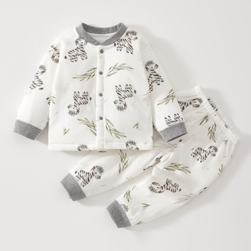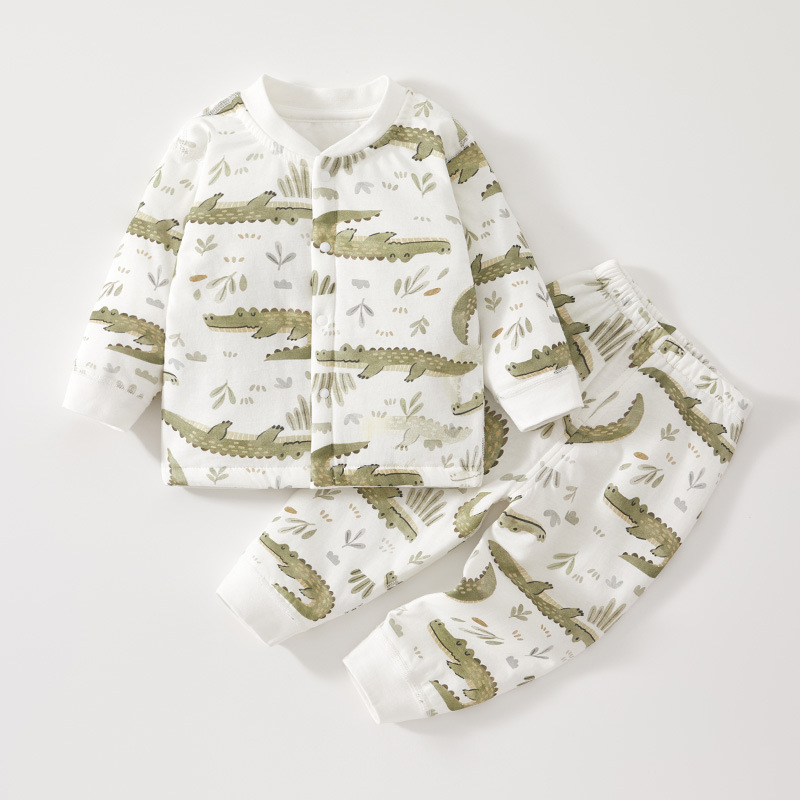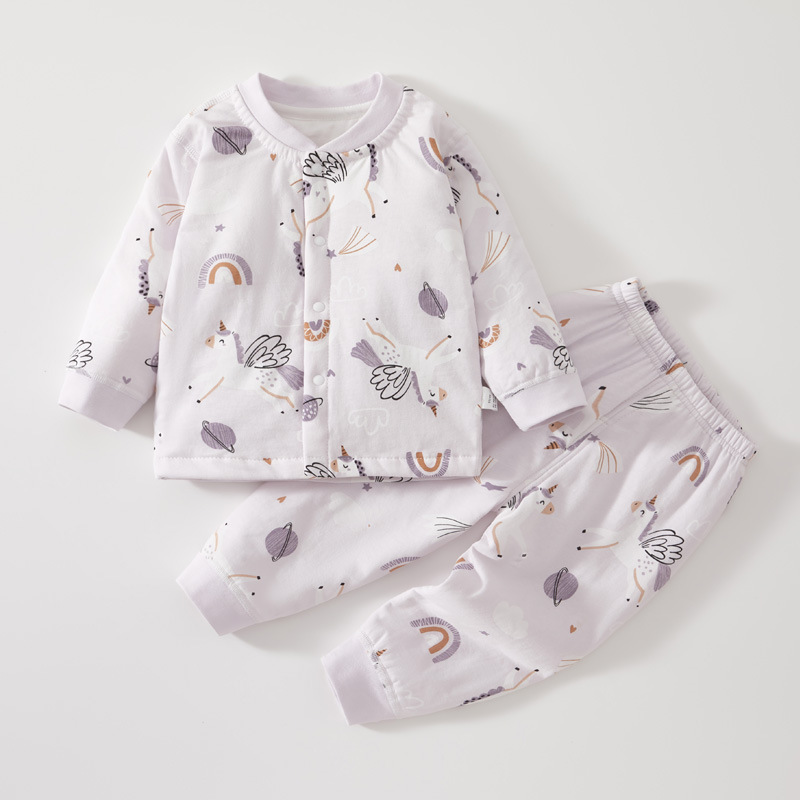 아기 옷, 가을 겨울 따뜻한 신생아 누비 잠옷, 신생아 투피스 세트, 라운드 넥 순면 스플릿 슈트