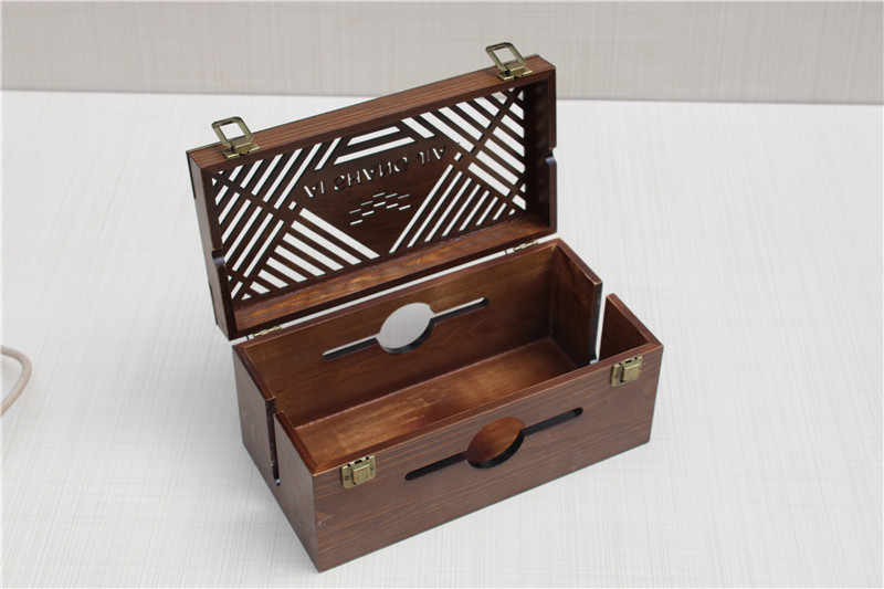 소나무 중공 플러그 박스 소켓 박스 플러그 박스 전원 코드 저장 상자 침실 거실 와이어 수집 상자 나무 상자