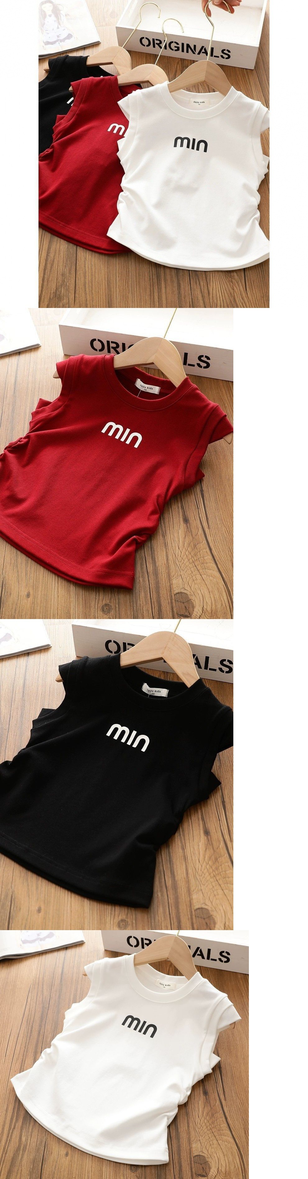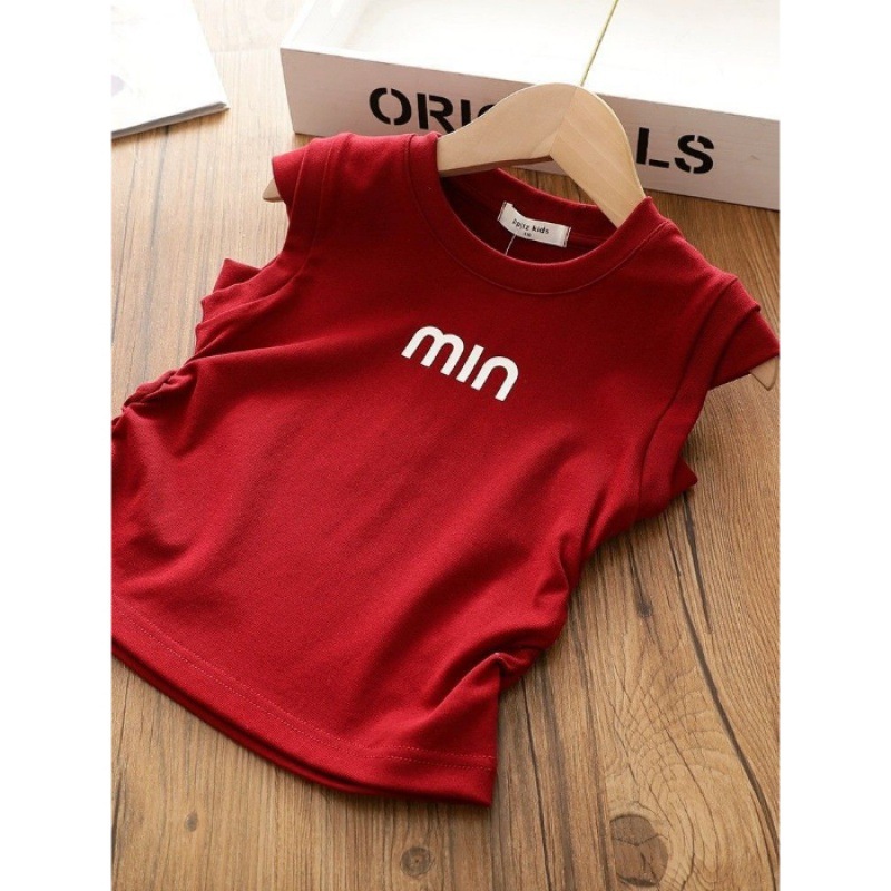 소녀 짧은 순면 플라잉 슬리브 셔츠 여름 새로운 스타일 홈 같은 스타일 유행 슬림핏 한국 스타일 트렌디 탑