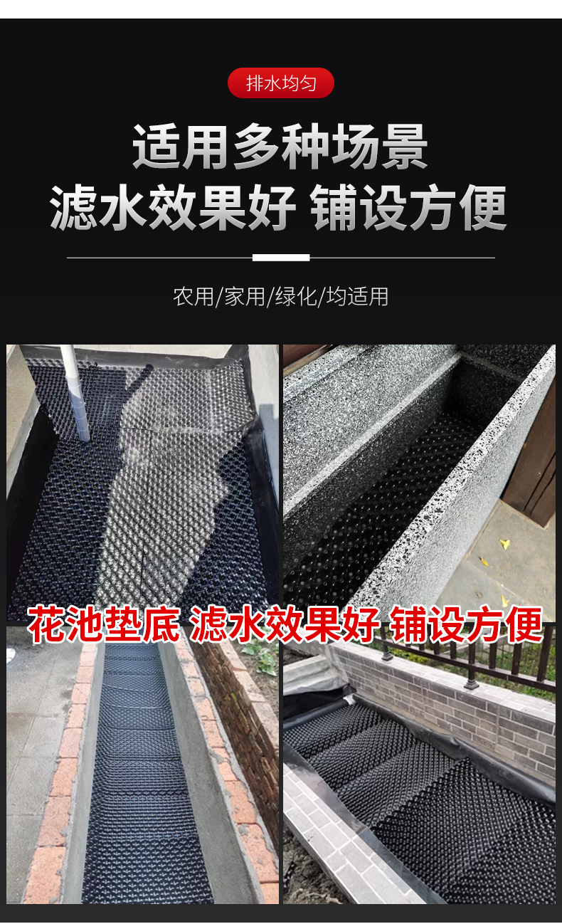 Ll 지붕 정원 배수 보드 야채 지붕 녹화 물 저장 보드 워터 필터 보드는 뿌리 양면 뿌리 차단 보드 루트 제어를 썩지 않습니다.