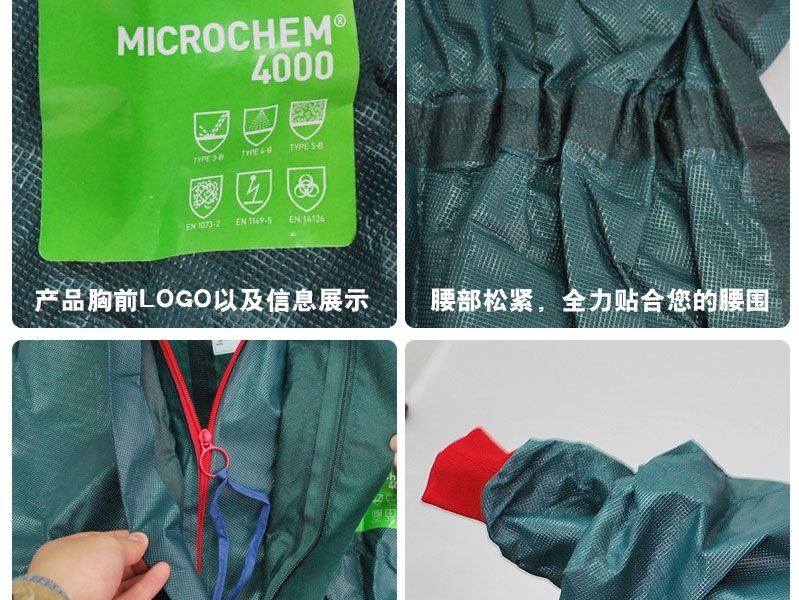 Ansier 미세 보호 MC4000 산 및 알칼리 내성 생화학 적 의류 실험실 녹색 더블 소매 Siaman 보호 의류스토어 가기