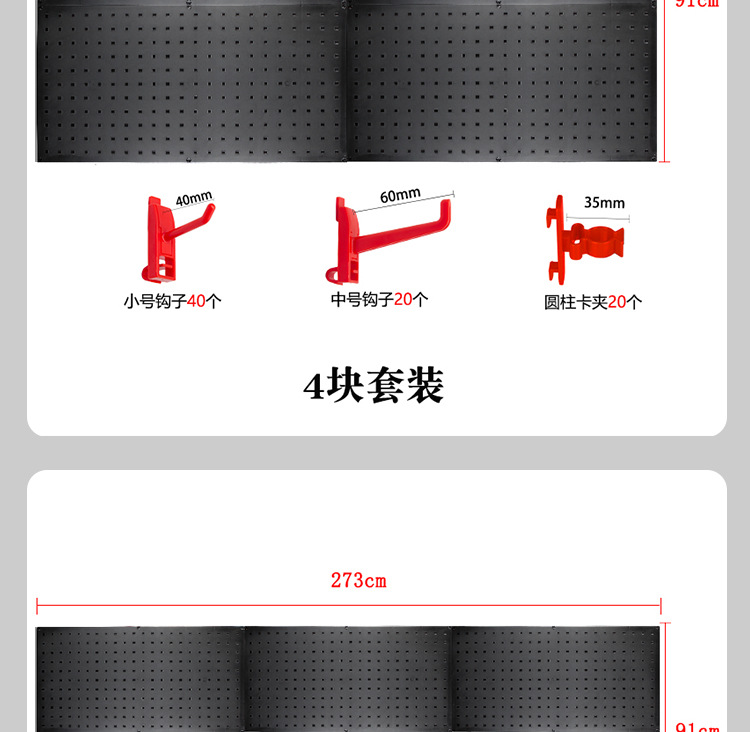 • PP 플라스틱 강철 걸이판 4개에는 80개의 후크가 함께 제공됩니다.