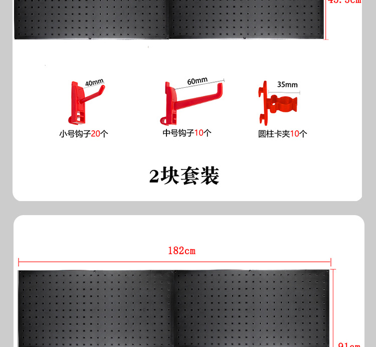 • PP 플라스틱 강철 걸이판 2개에는 후크 40개가 함께 제공됩니다.