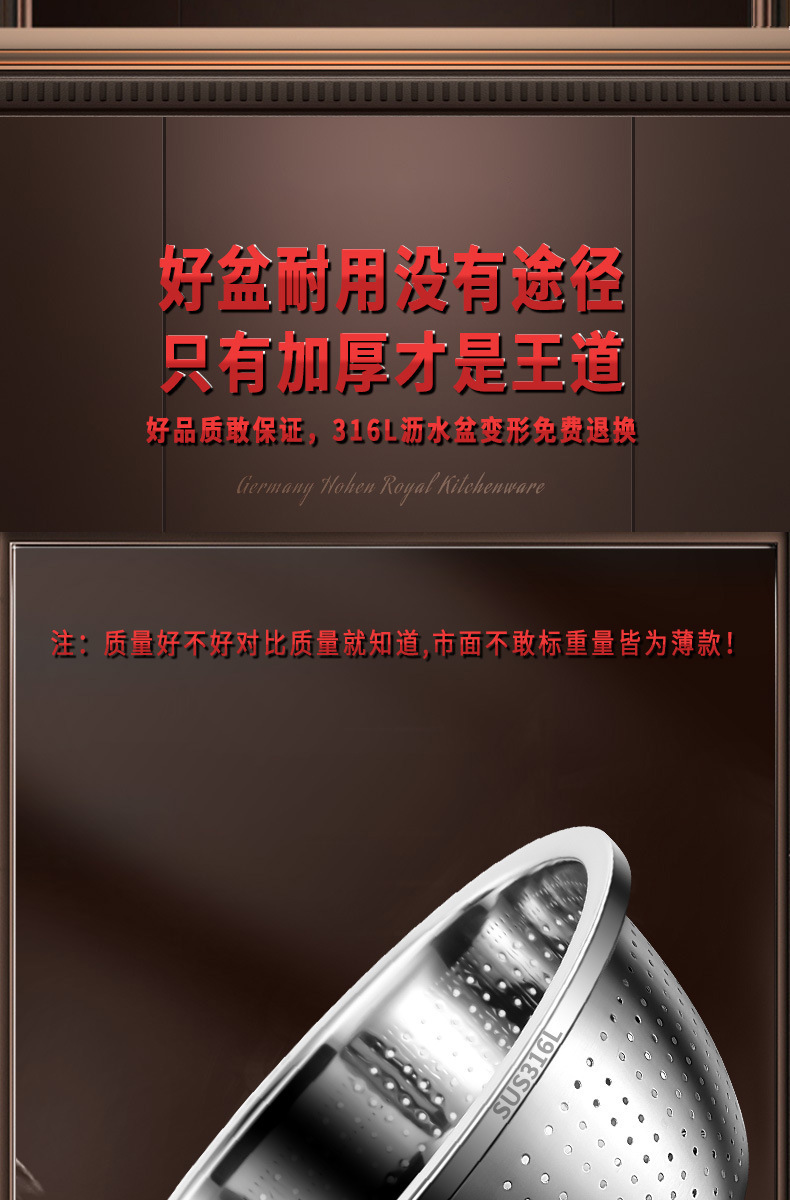 316 스테인레스 스틸 누출 순 야채 세척 분지 배수 바구니 1 분지 다중 사용 쌀 세척 분지 주방 가정용 분지 세트