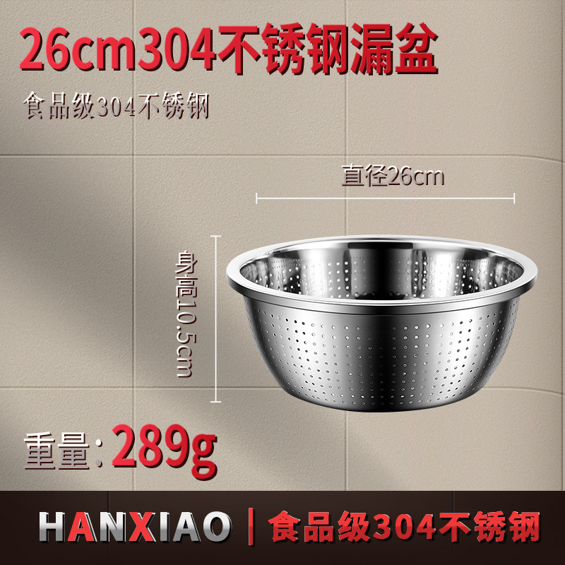 • [304 식품 학년 스테인레스 스틸] 26cm 배수 분지 단단한 분지