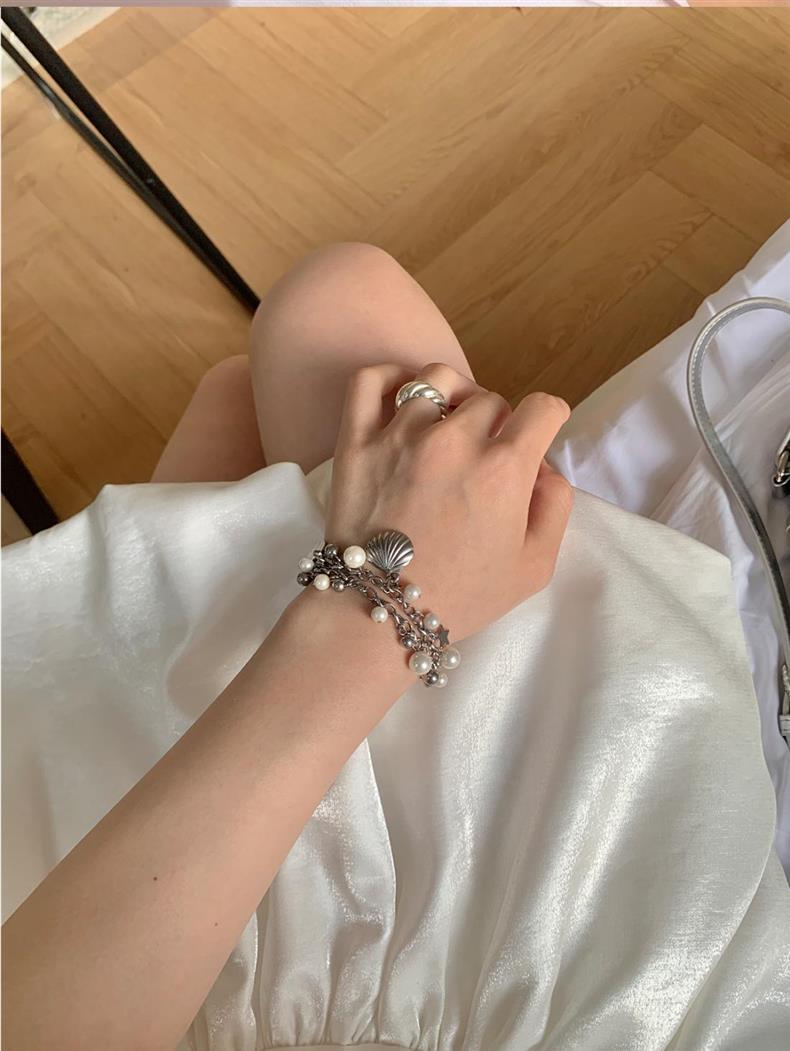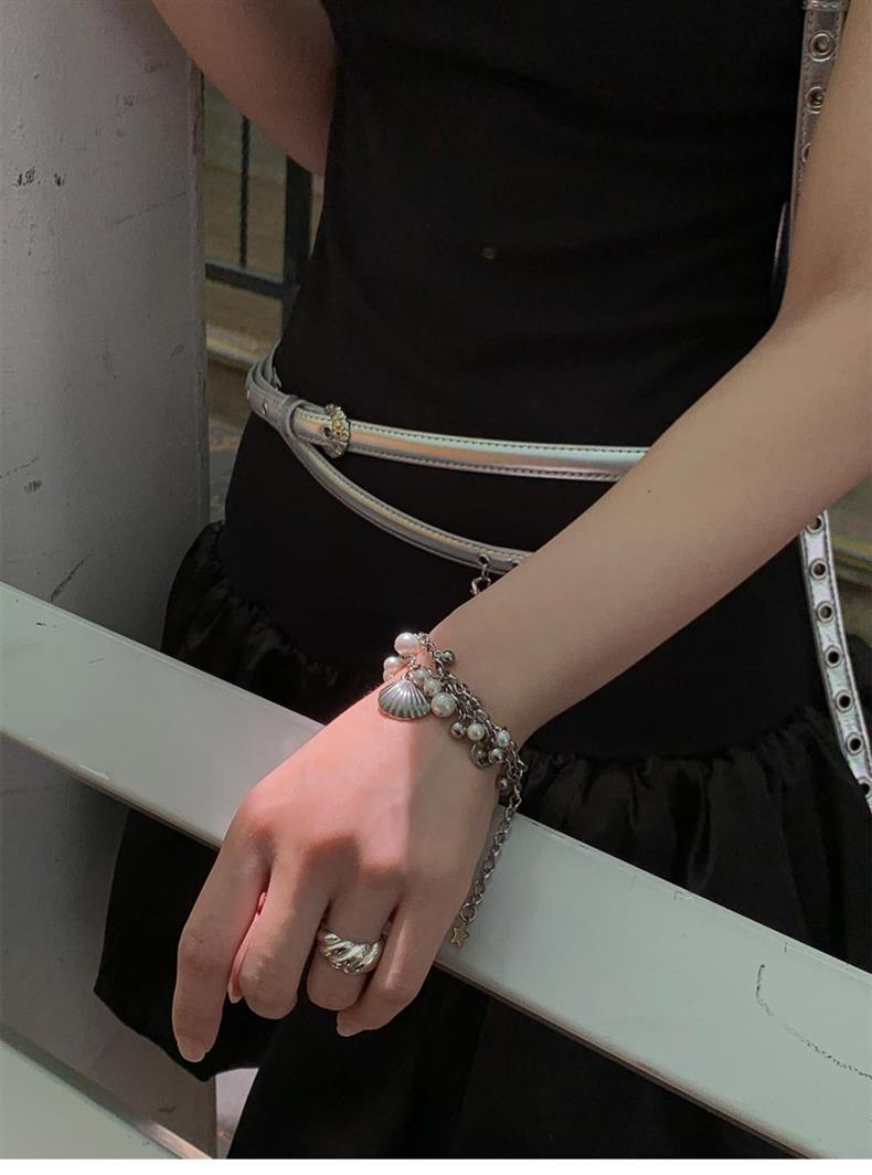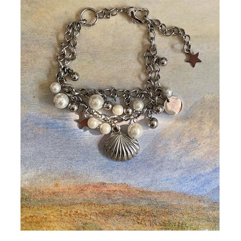 "해변 서곡" 팔찌 구슬 티타늄 스틸 쉘 펜던트 조정 가능한 원래 디자인스토어 가기