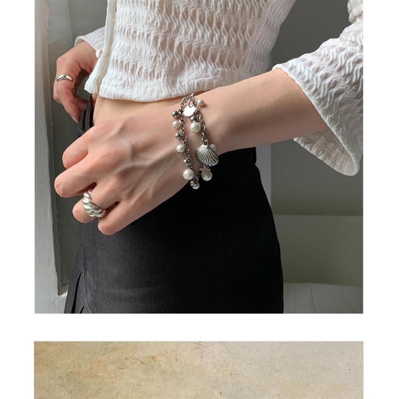 "해변 서곡" 팔찌 구슬 티타늄 스틸 쉘 펜던트 조정 가능한 원래 디자인