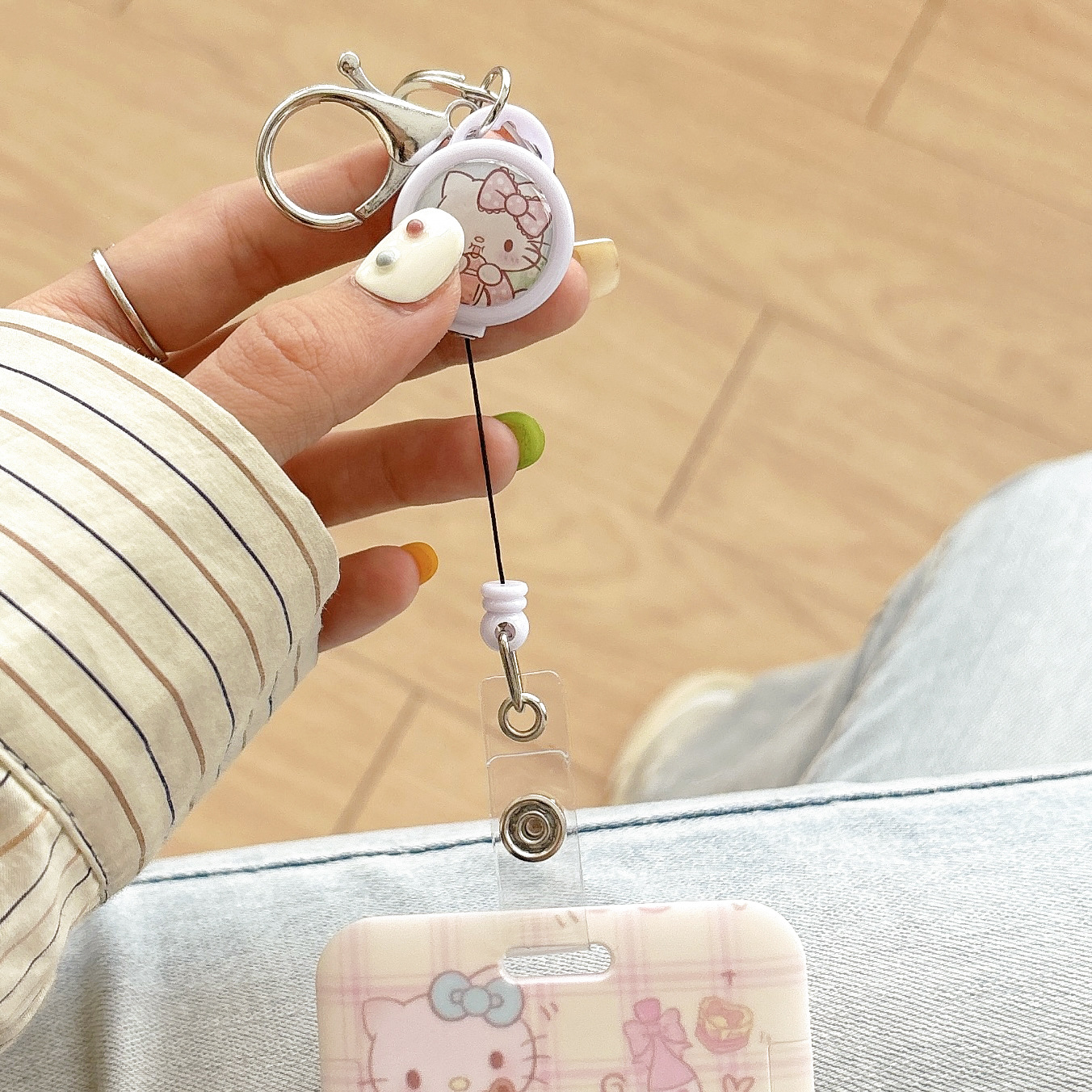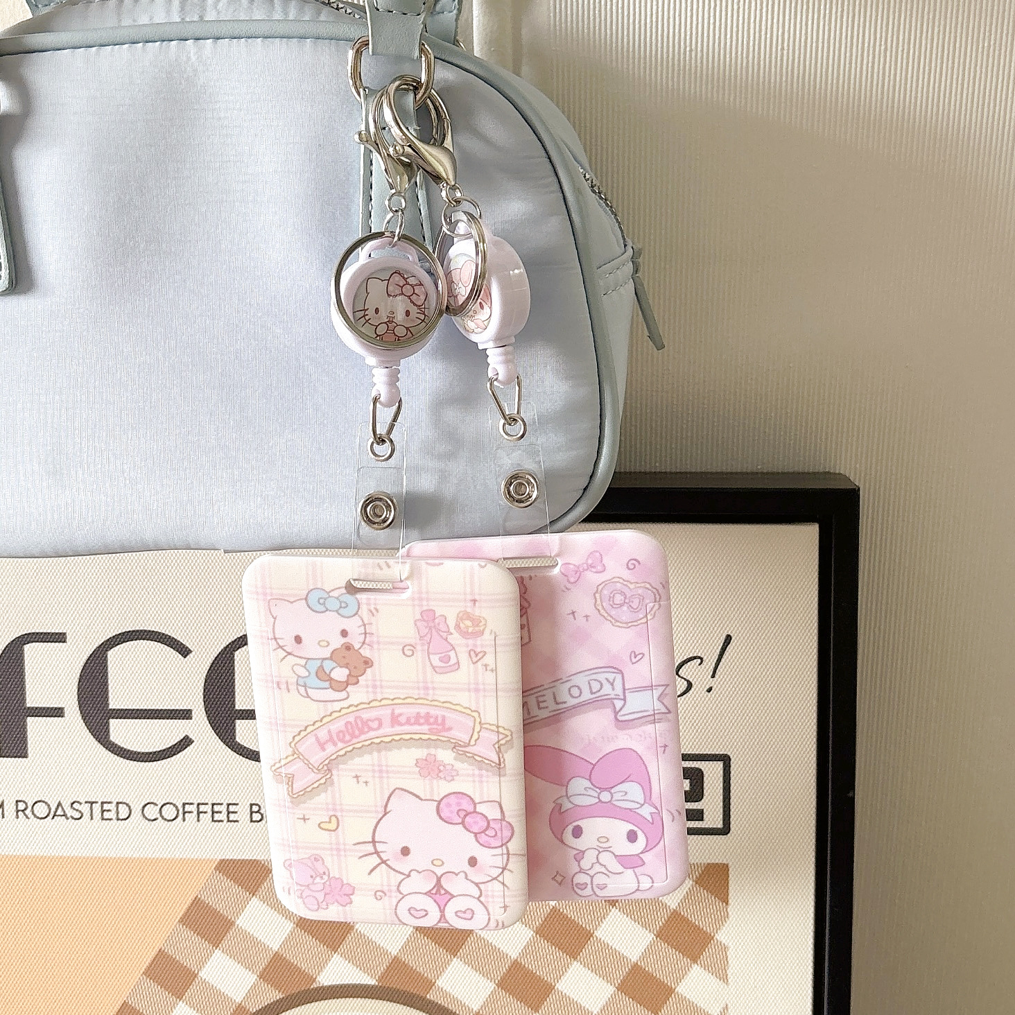 망원경 쉬운 풀 버클 버스 만화 키 체인 학생 식사 카드 보호 액세스 카드 세트 산리오 푸딩 매달린 버클스토어 가기