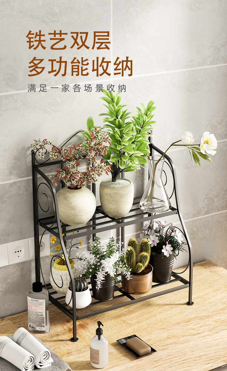 일본식 철제 이층 수납 선반 가정용 사무실 화분 화장품 정리대 접이식 수납 선반