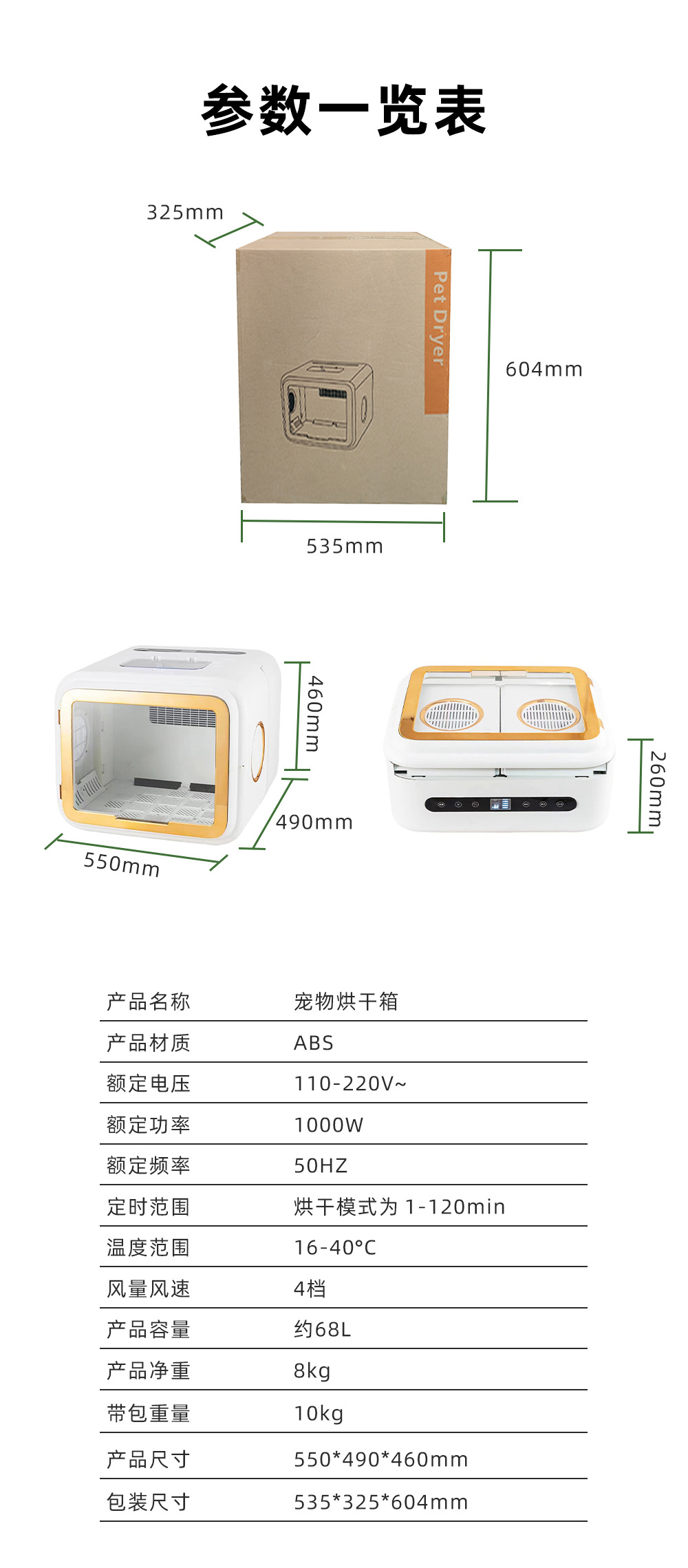 국경을 넘는 접이식 애완동물 건조기 고양이집 가정용 68L 강아지 고양이 목욕 및 털 건조 자동 건조기스토어 가기