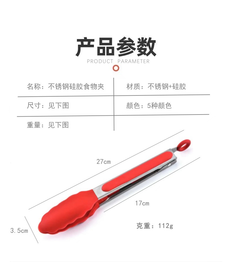 9 인치 식품 등급 실리콘 식품 클립 라운드 헤드 주방 안티 핫 클립 스테인레스 스틸 클립 통합 식품 클립스토어 가기