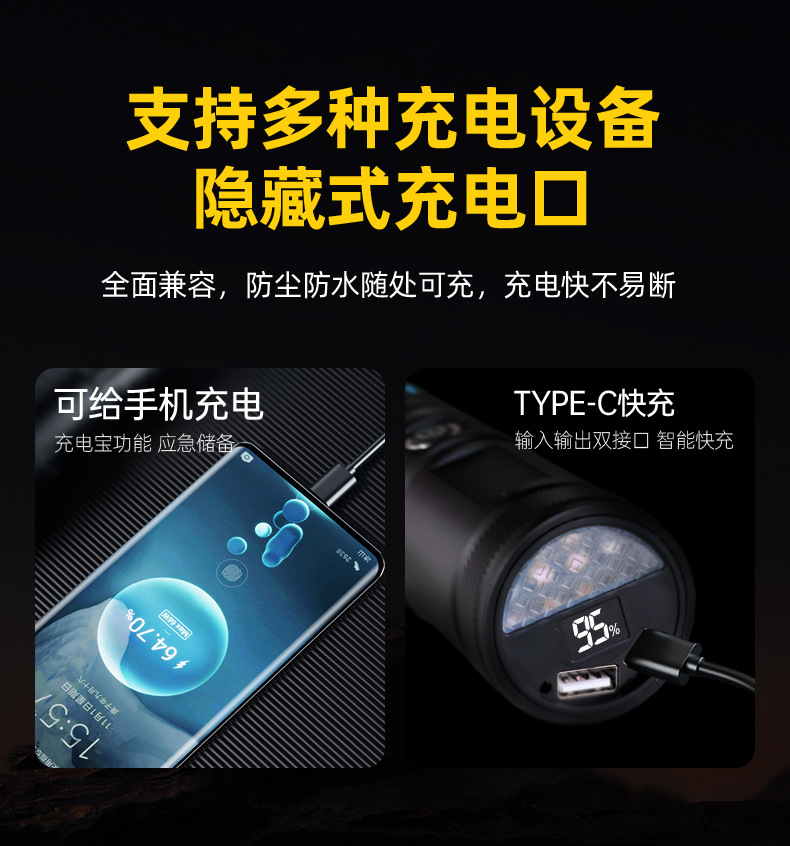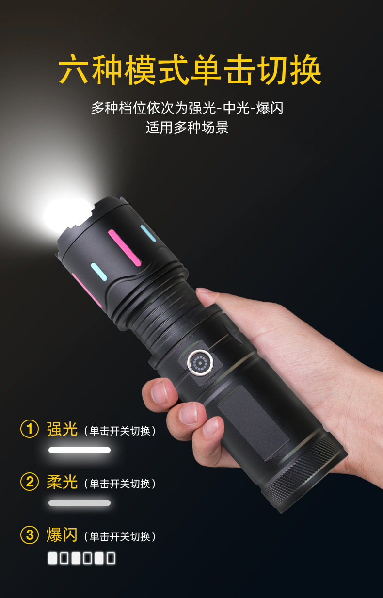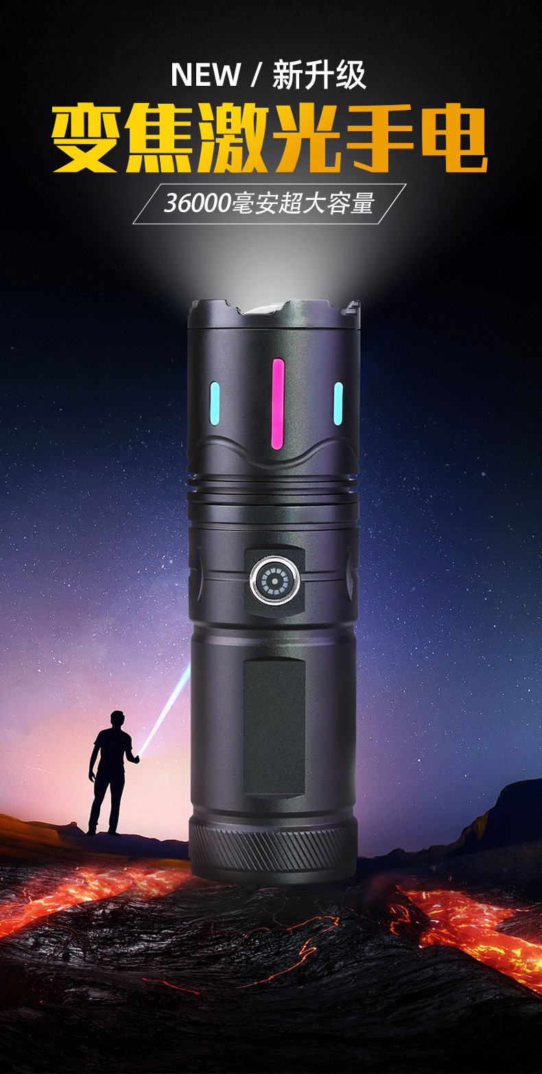 COB 작업 조명이있는 30W 흰색 레이저 손전등 국경 새로운 손전등 USB 충전식 야외 조명스토어 가기